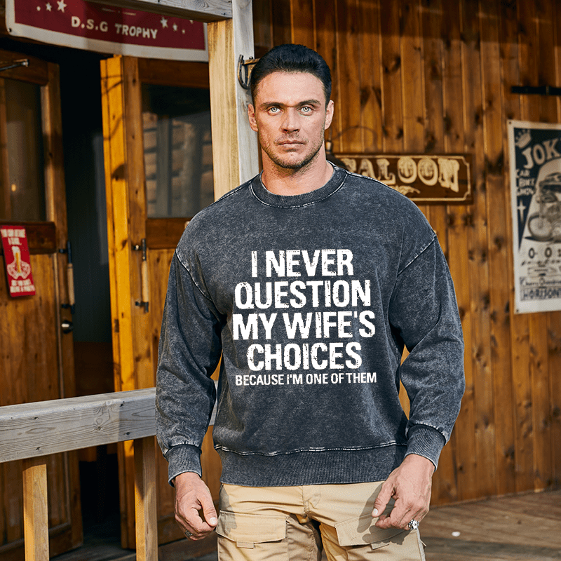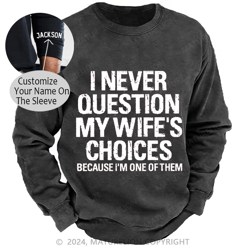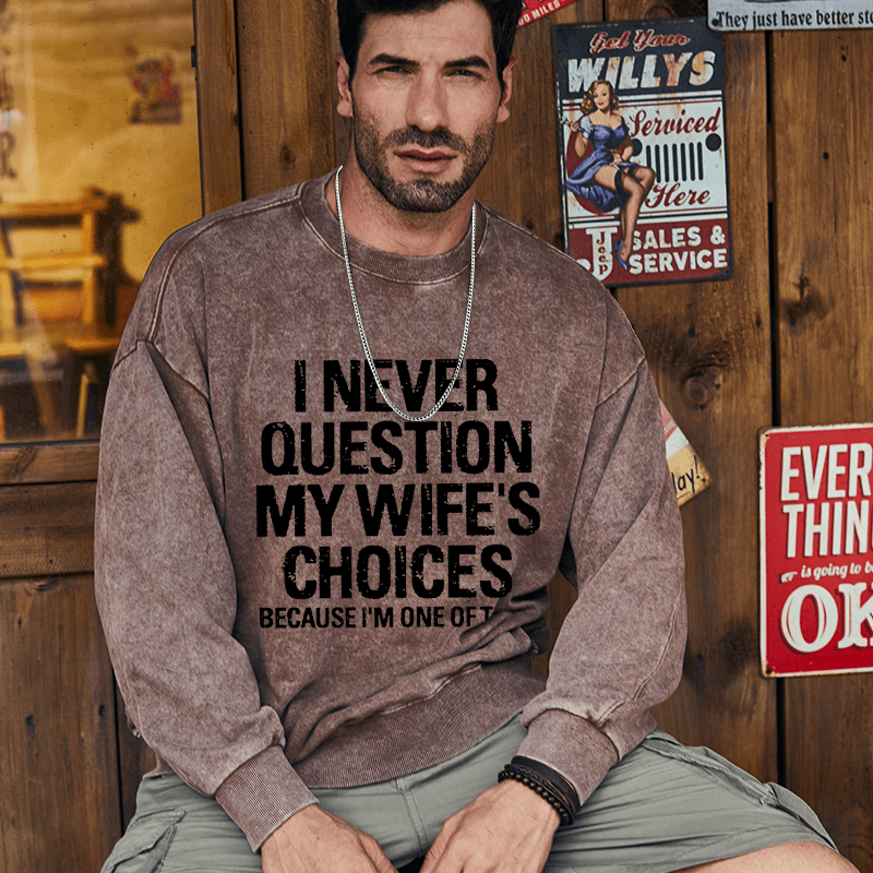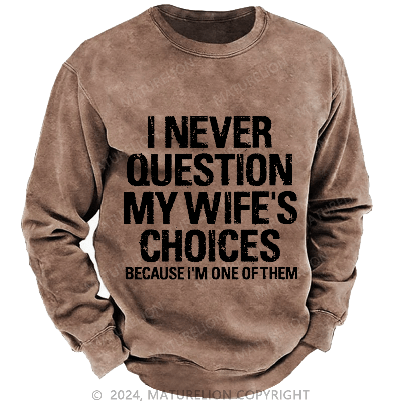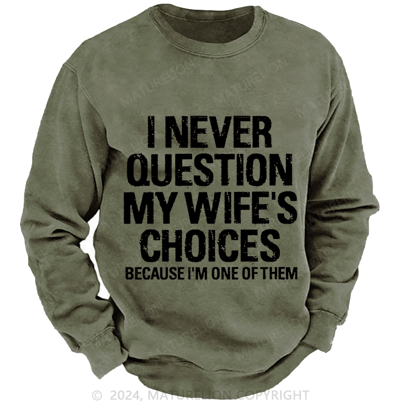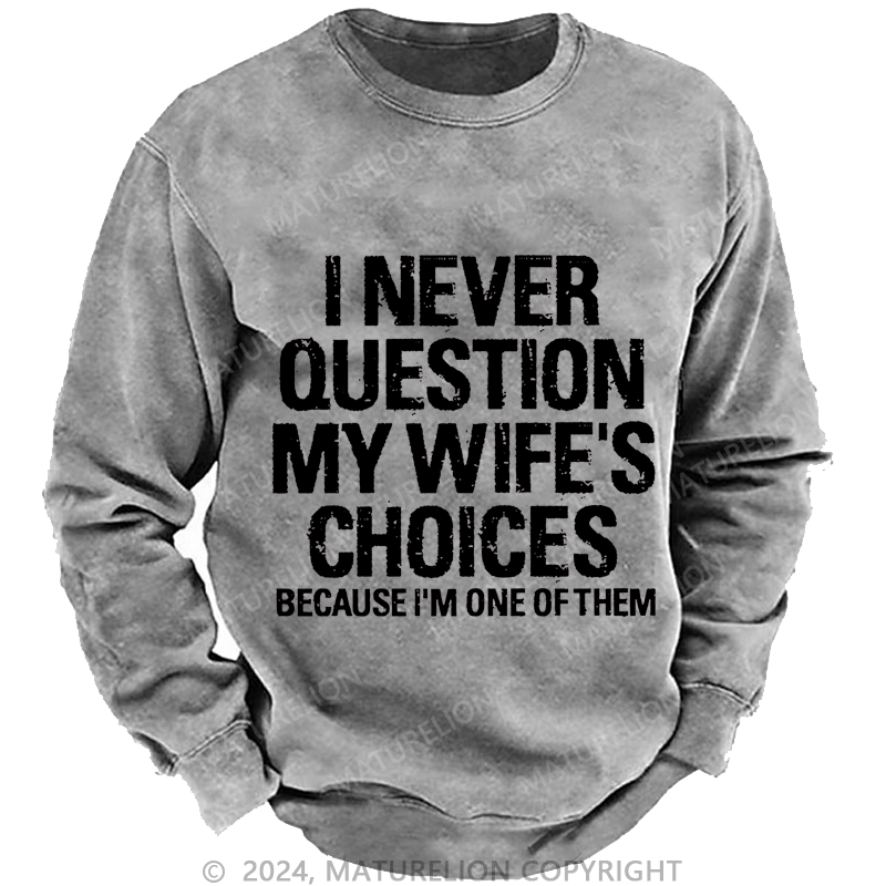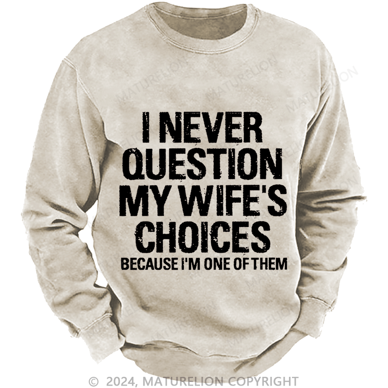 Maturelion Men's Sweatshirt I Never Question My Wife's Choices Because I Am One Of Them Custom Washed Sweatshirt