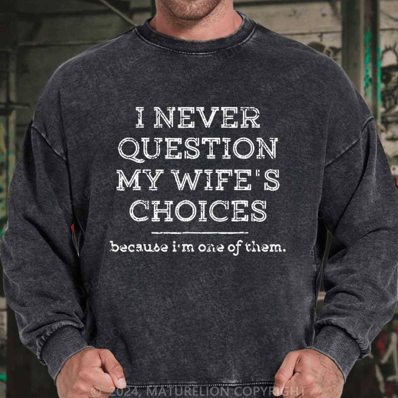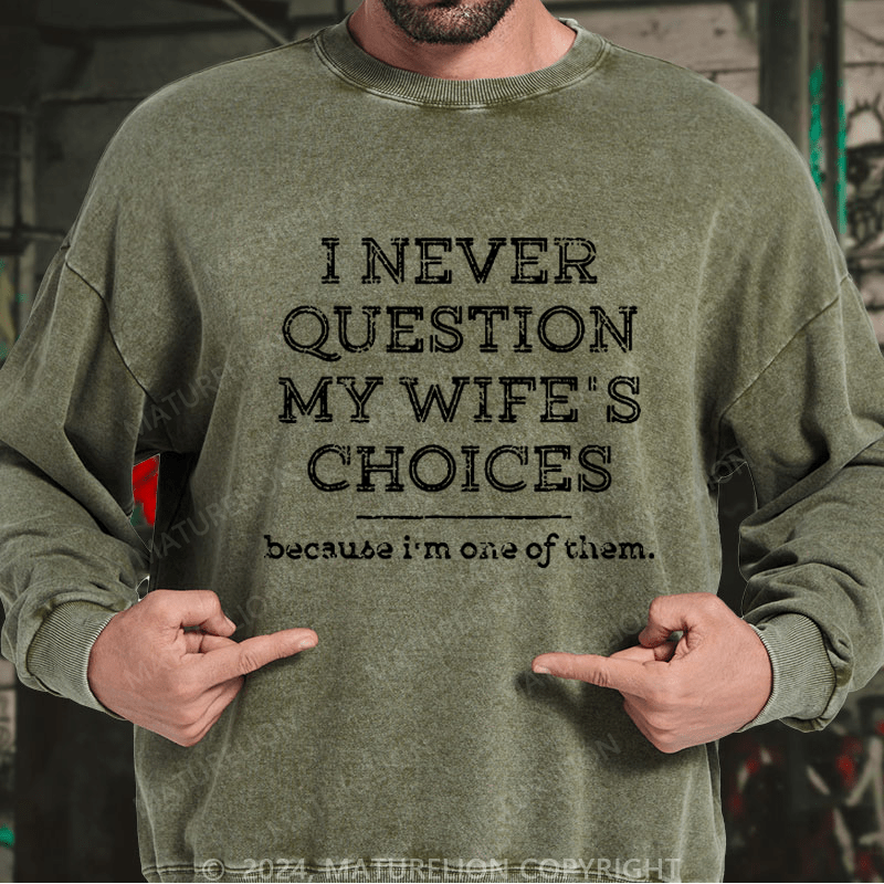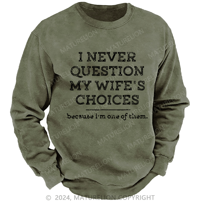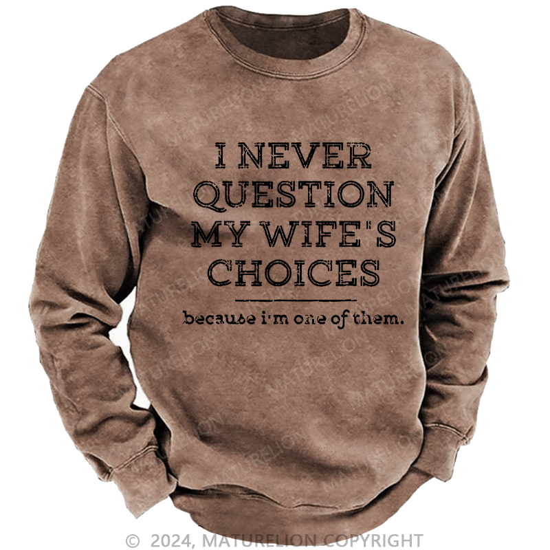 Maturelion Men's Sweatshirt I Never Question My Wife's Choices Because I'm One Of Them Custom Washed Sweatshirt
