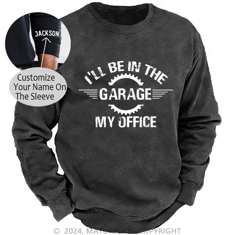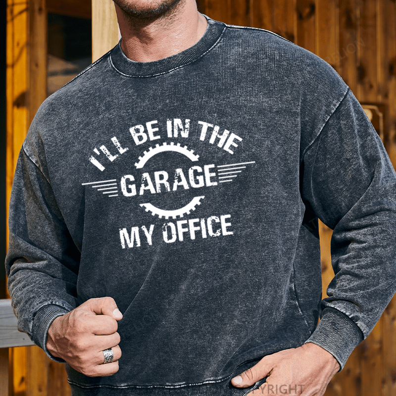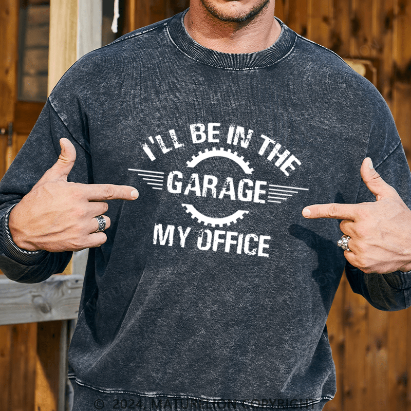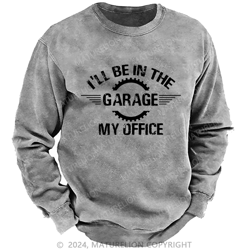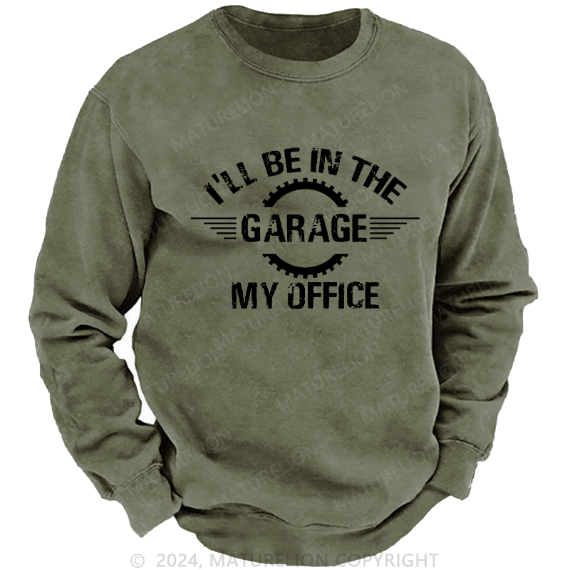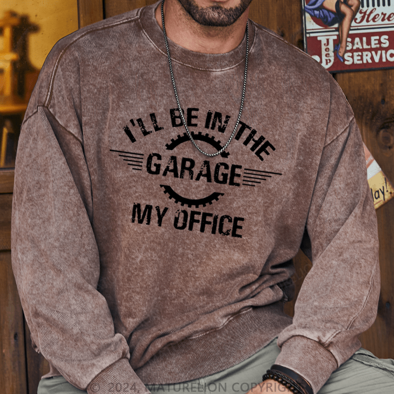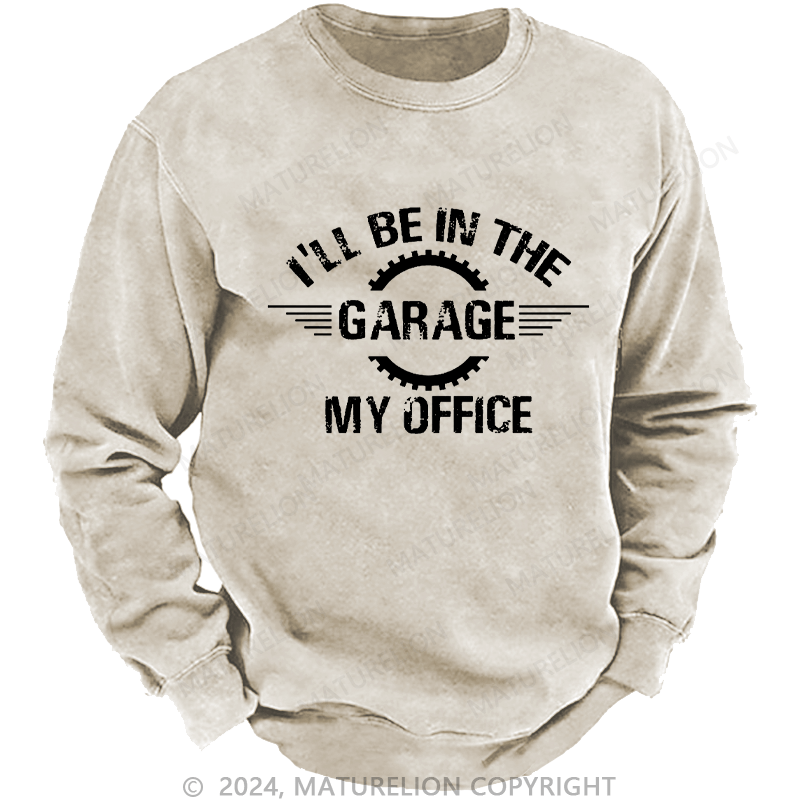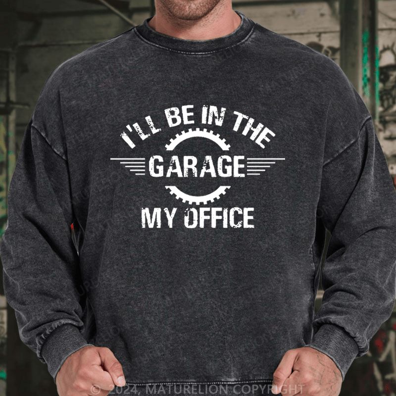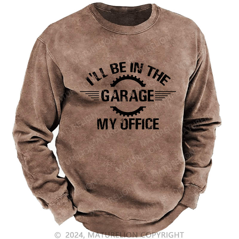 Maturelion Men's Sweatshirt I'll Be In The Garage My Office Custom Washed Sweatshirt