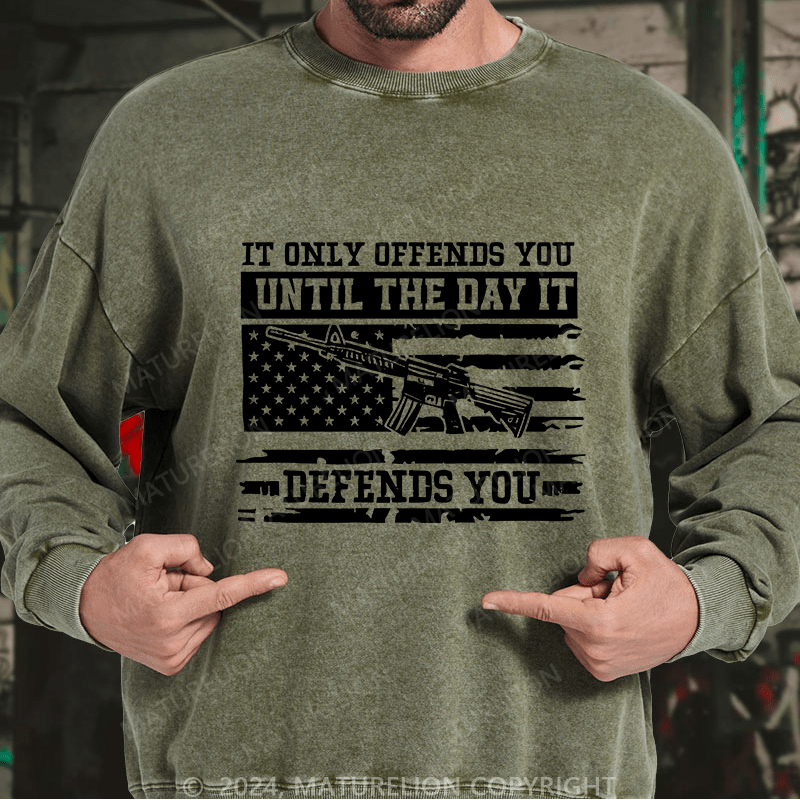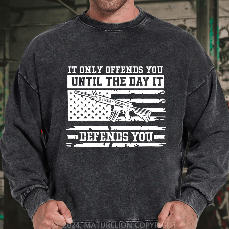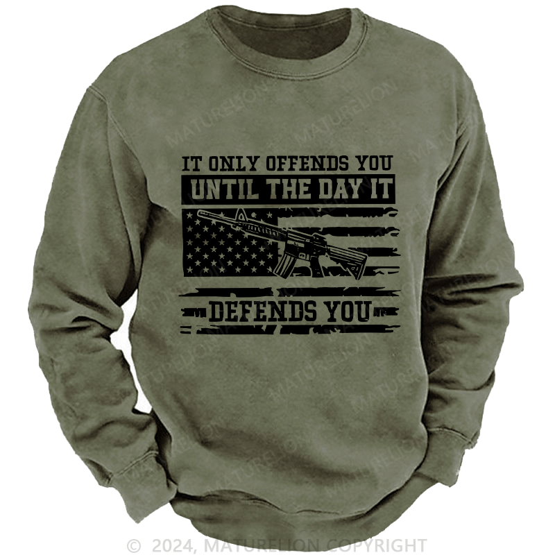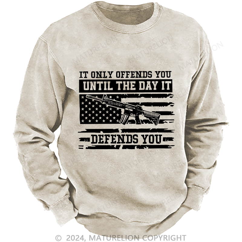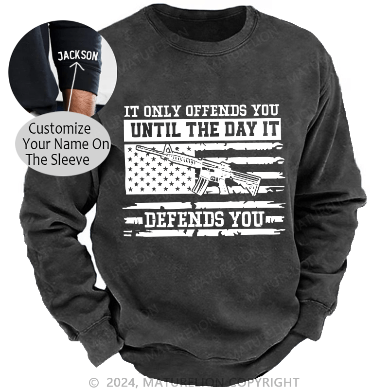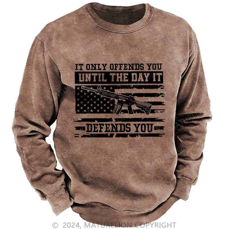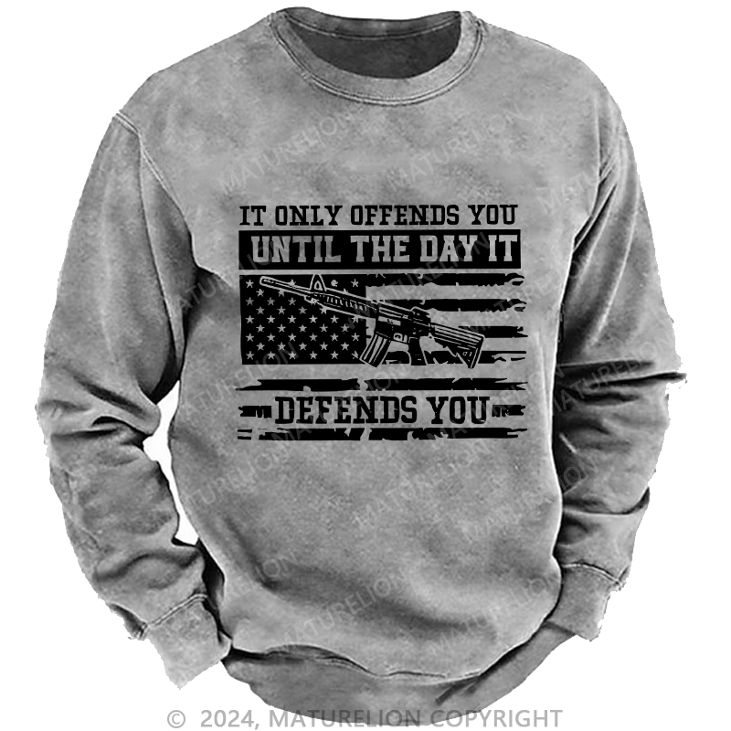 Maturelion Men's Sweatshirt It Only Offends You Defends You Custom Washed Sweatshirt