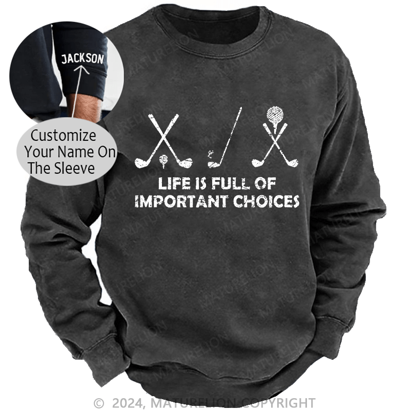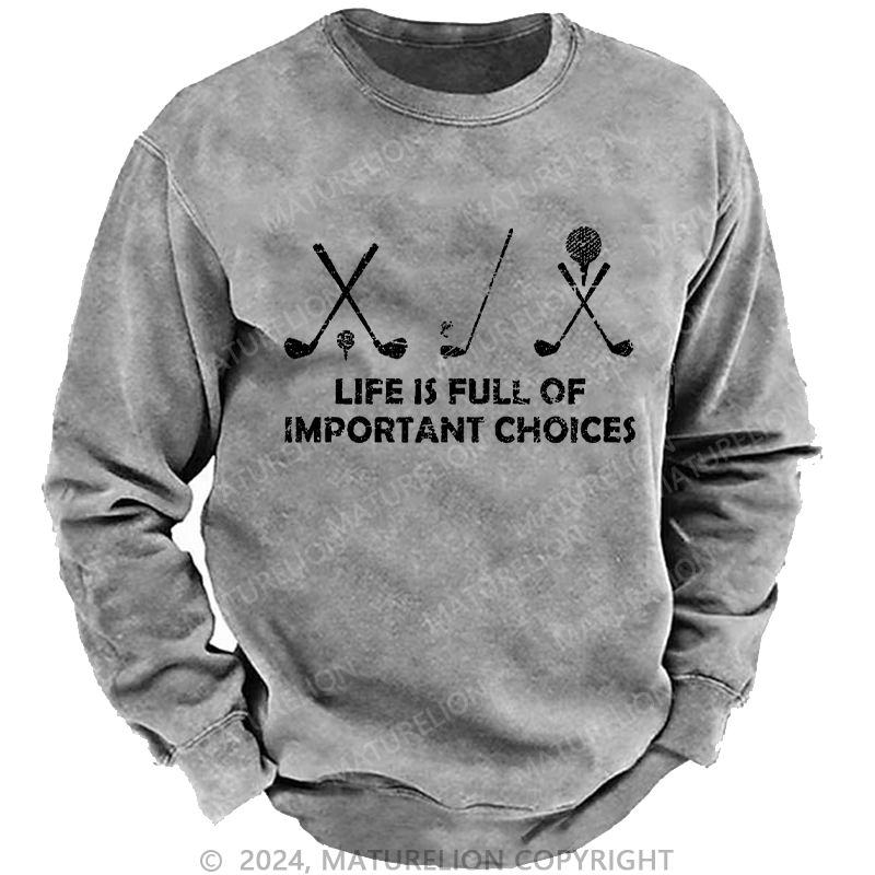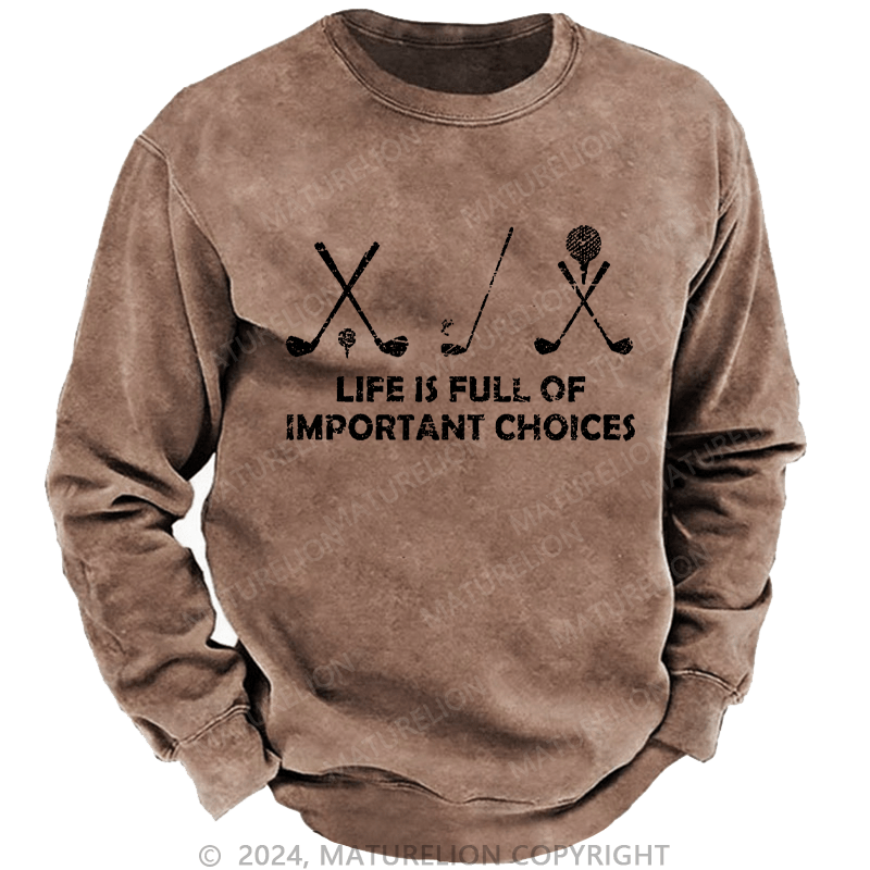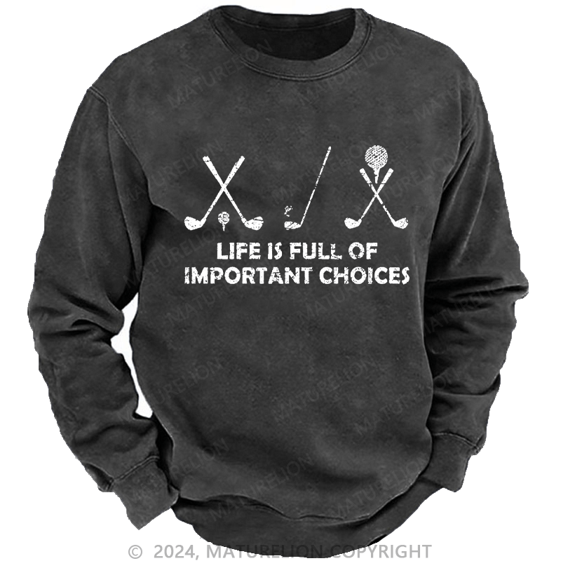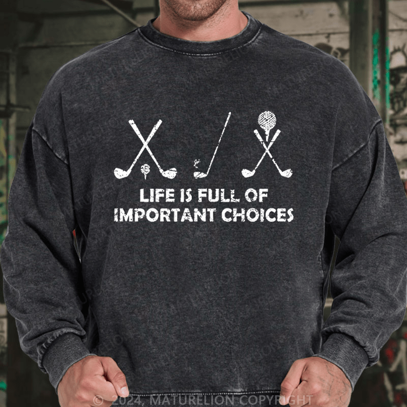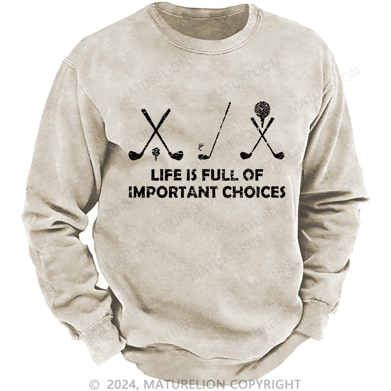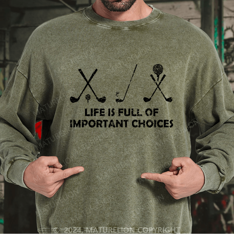 Maturelion Men's Sweatshirt Life Is Full Of Important Choices Golf Custom Washed Sweatshirt