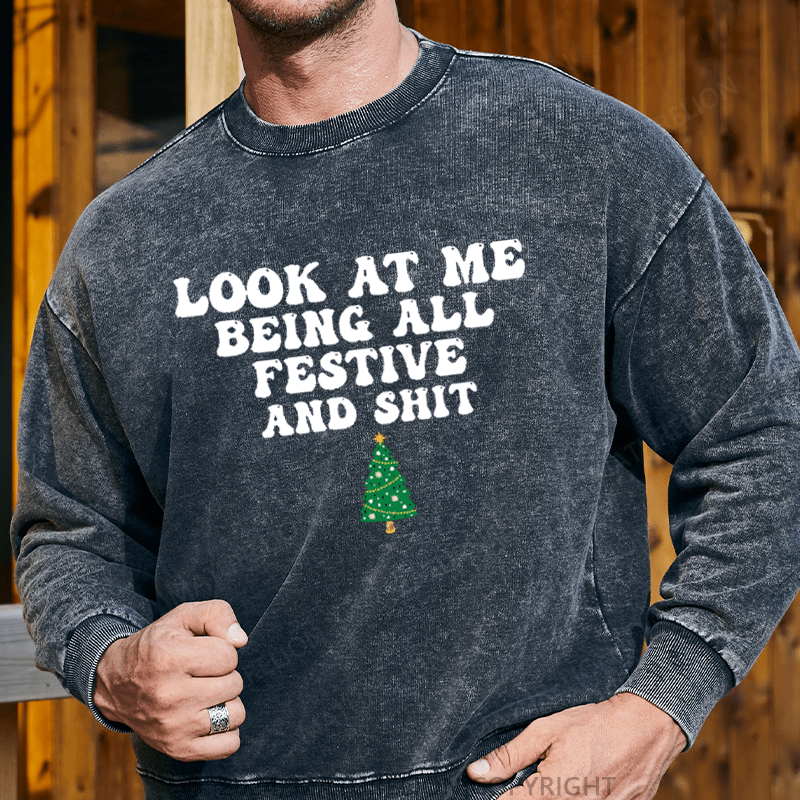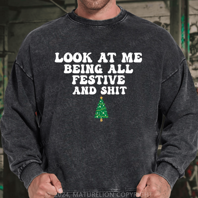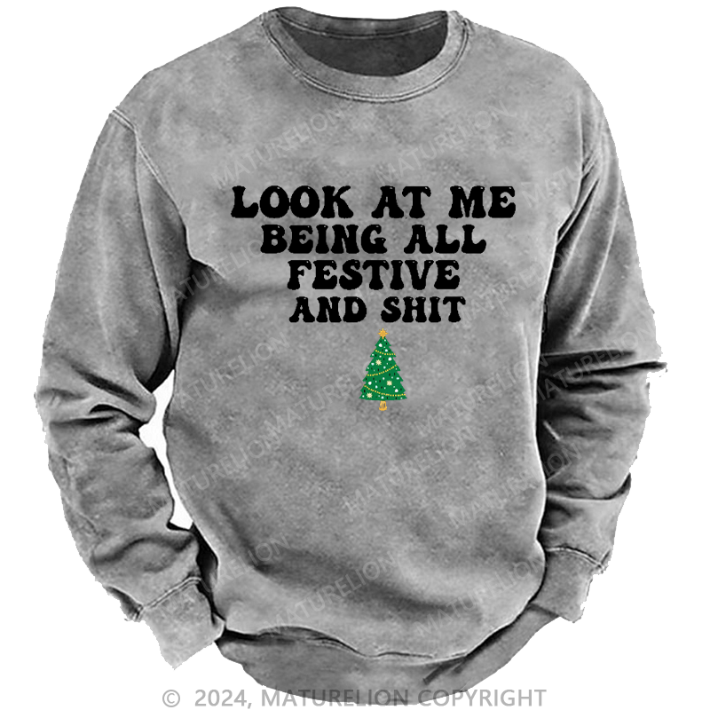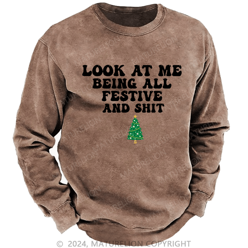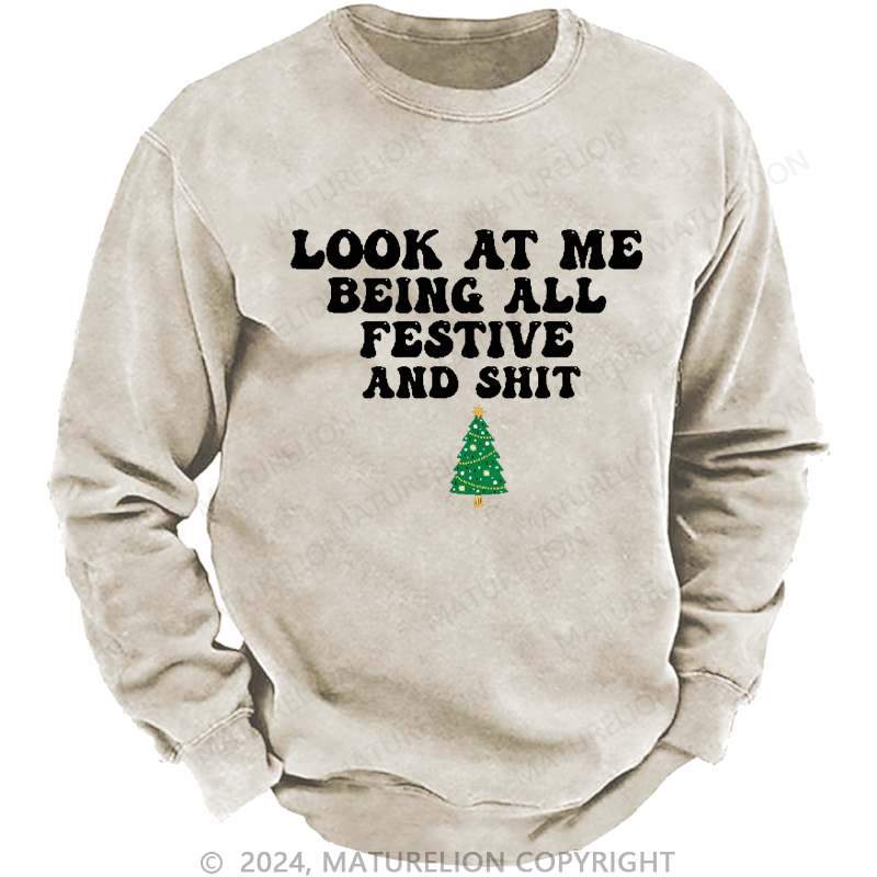 Maturelion Men's Sweatshirt Look At Me Being All Festive And Shit Custom Washed Sweatshirt
