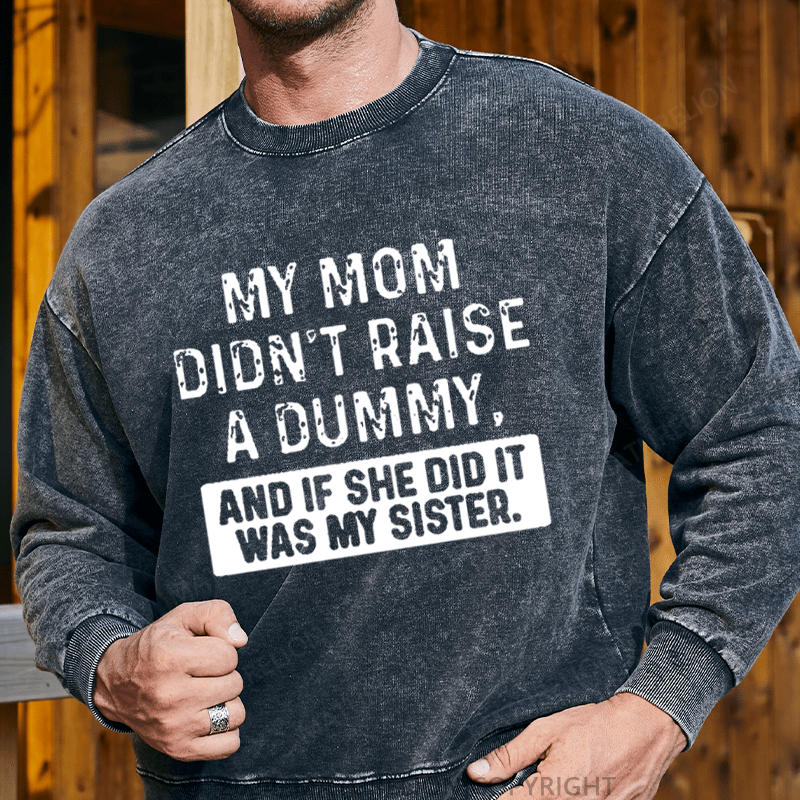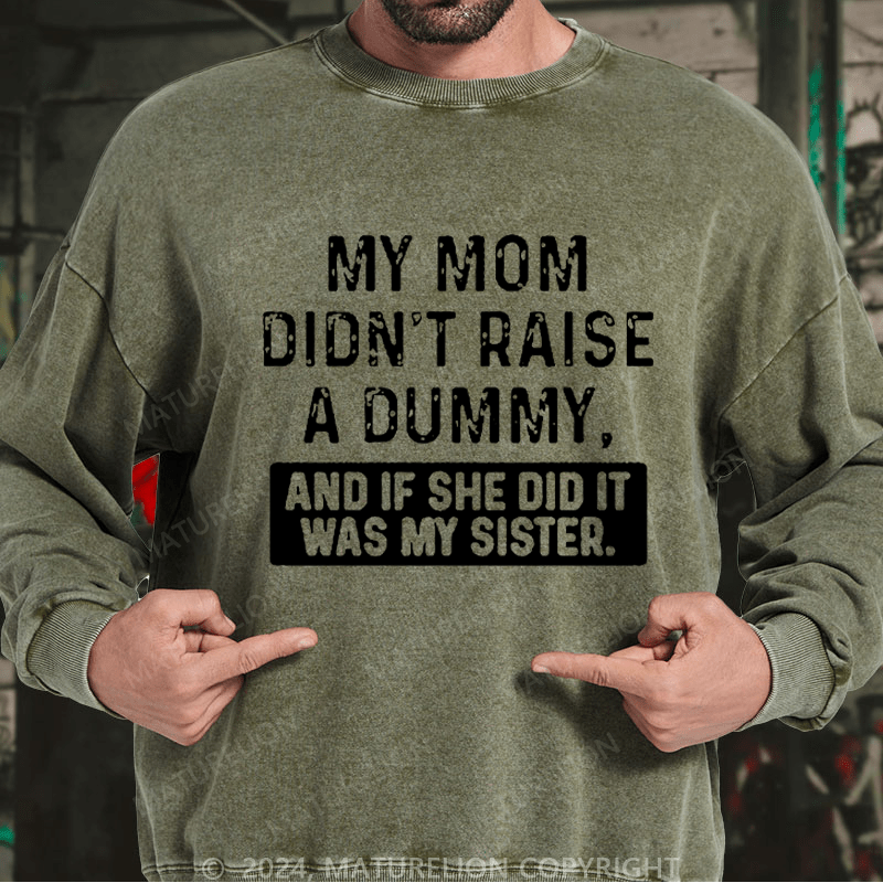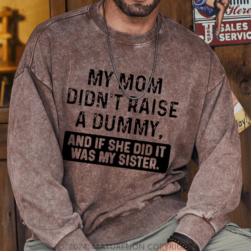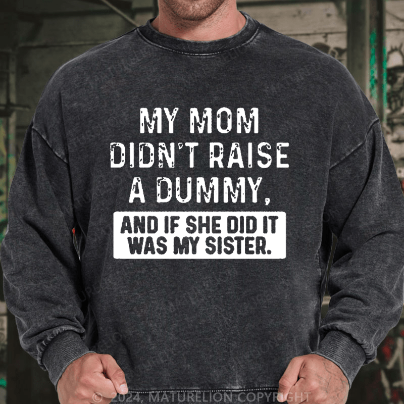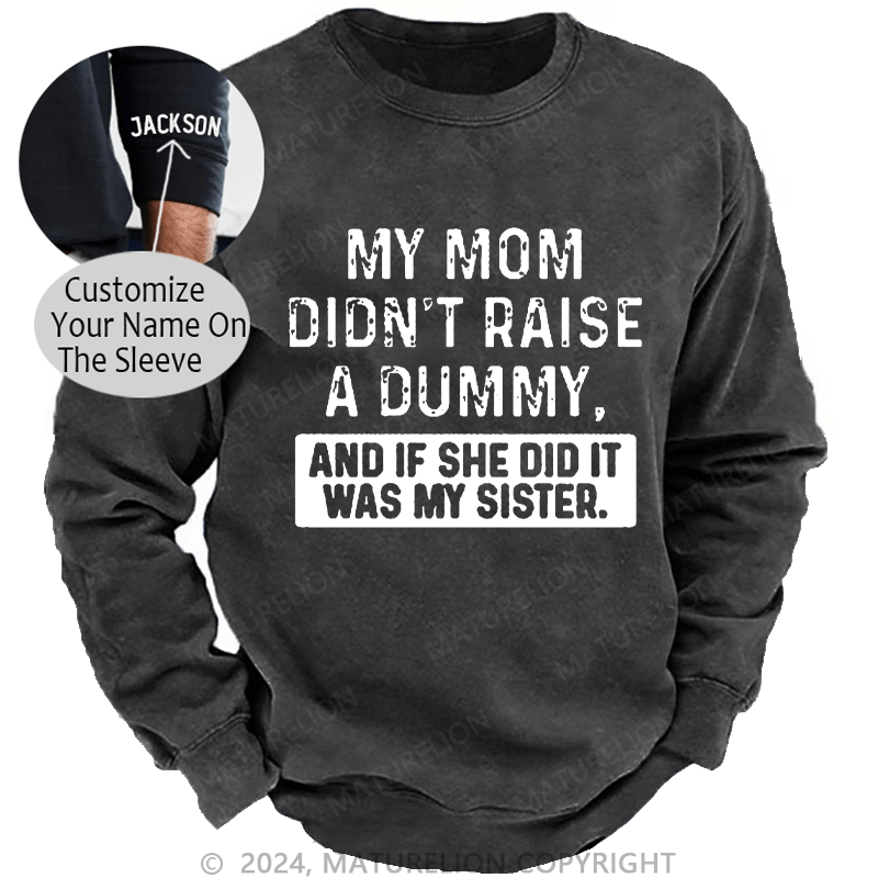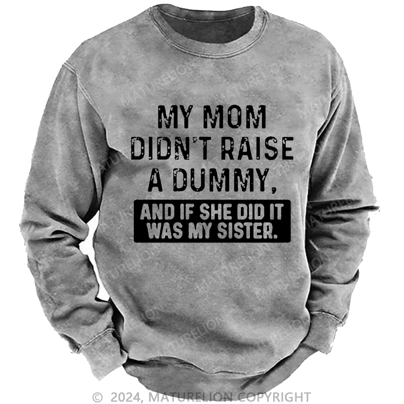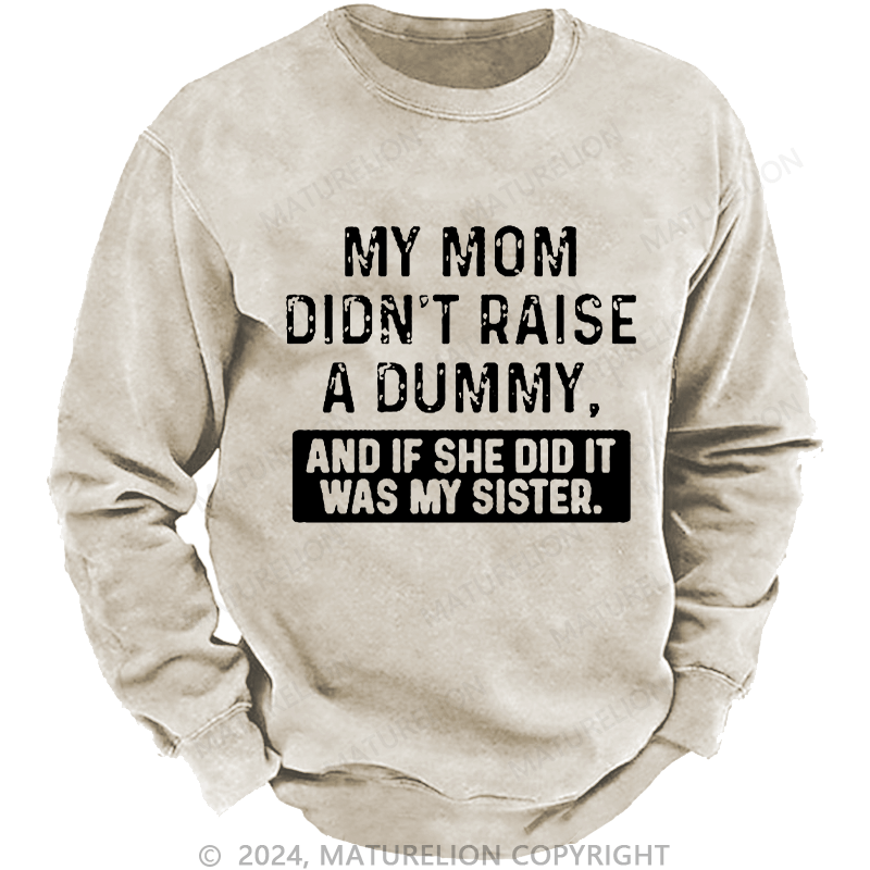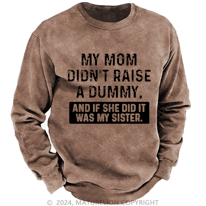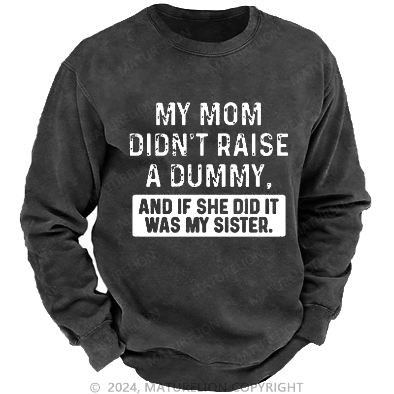 Maturelion Men's Sweatshirt My Mom Didn't Raise A Dummy, And If She Did It Was My Sister Custom Washed Sweatshirt