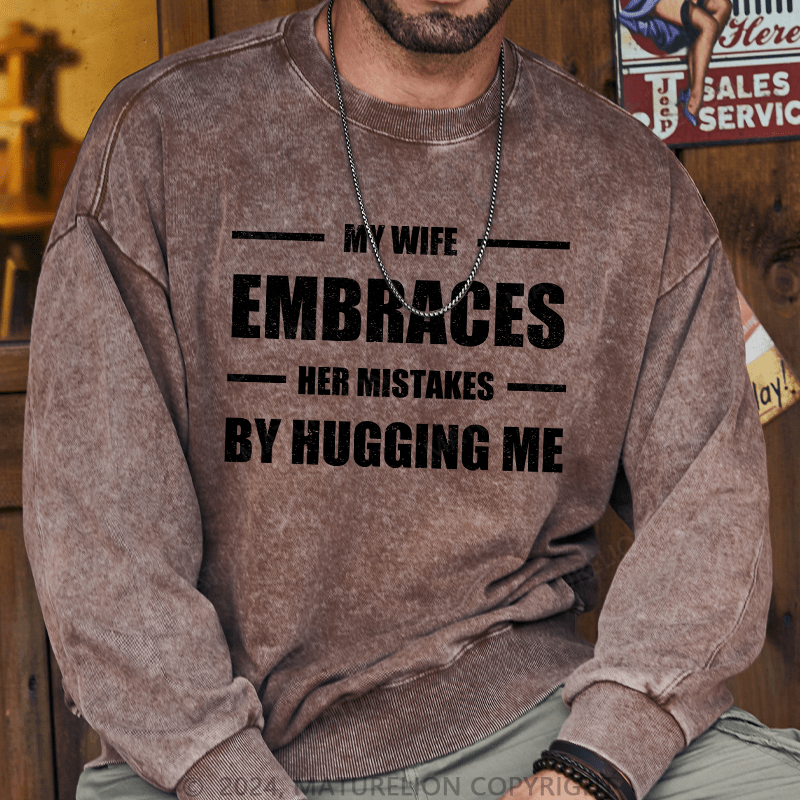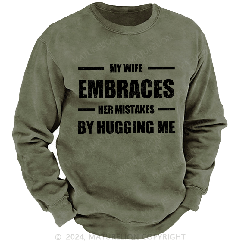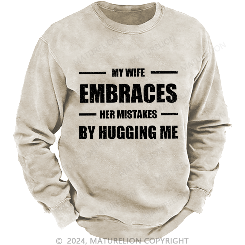 Maturelion Men's Sweatshirt My Wife Embraces Her Mistakes By Hugging Me Custom Washed Sweatshirt