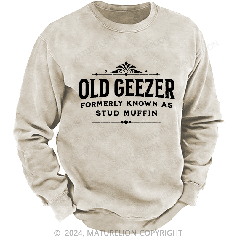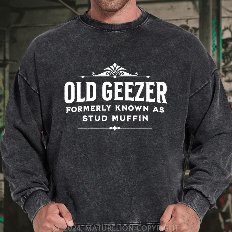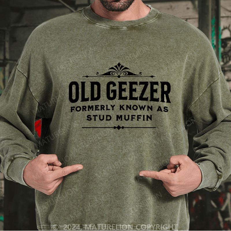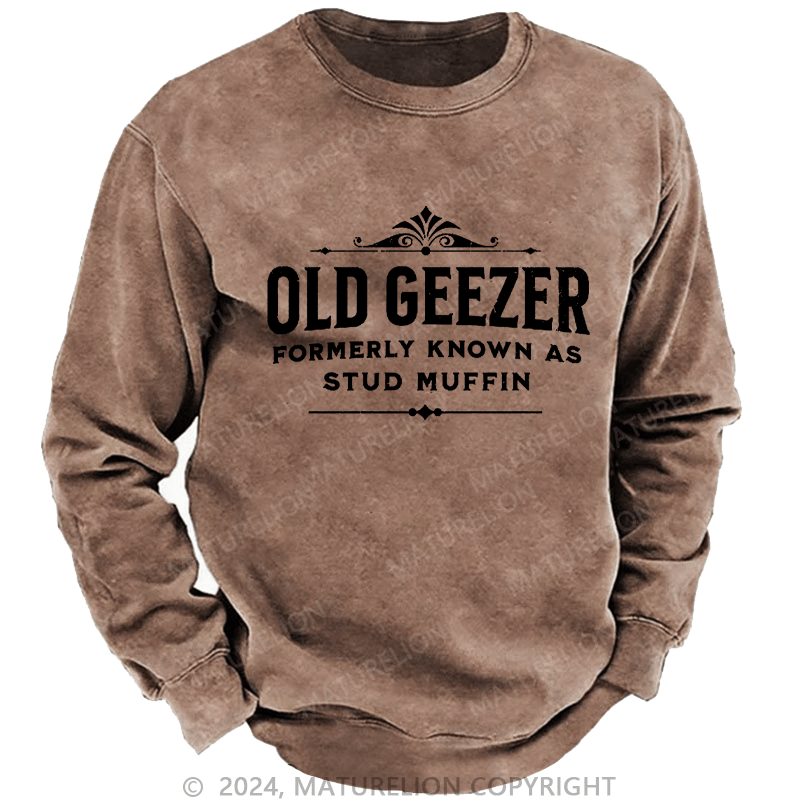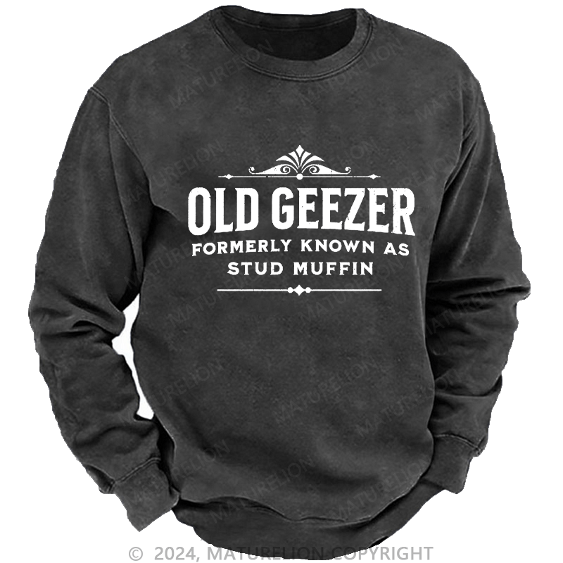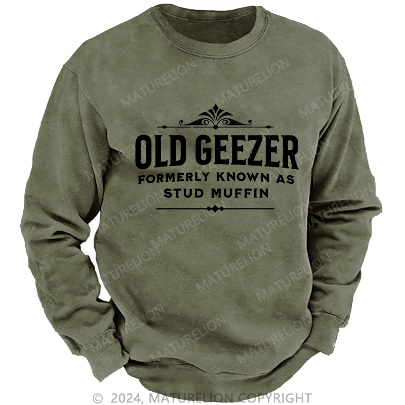 Maturelion Men's Sweatshirt Old Geezer Formerly Known As Stud Muffin Custom Washed Sweatshirt