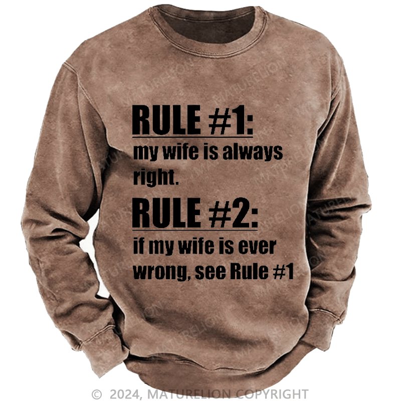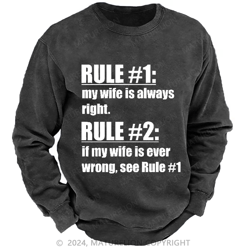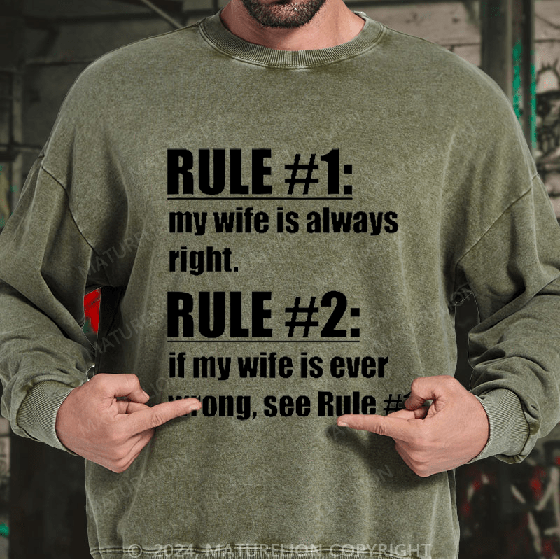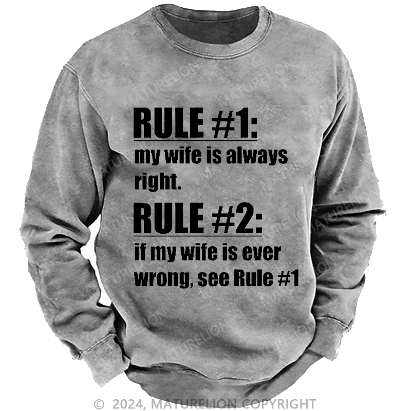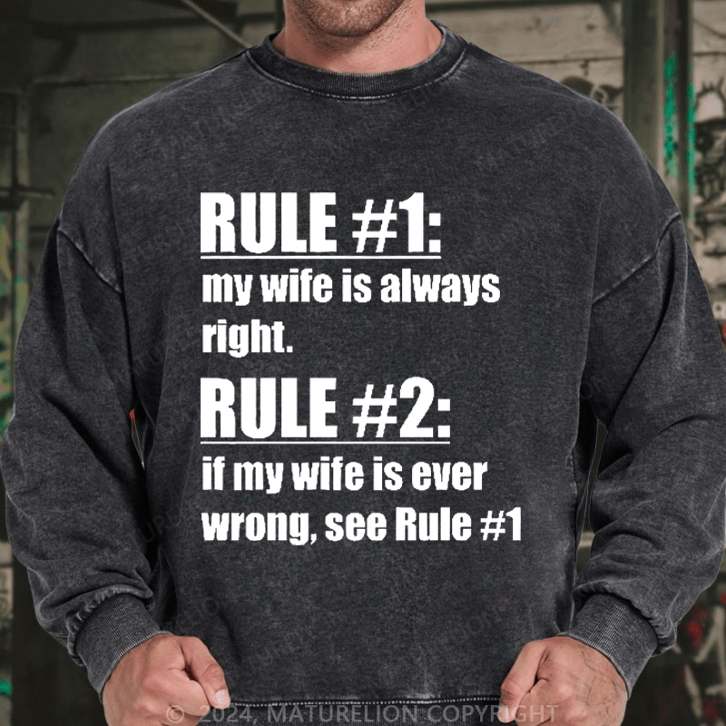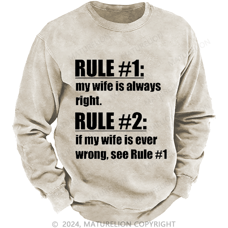Maturelion Men's Sweatshirt Rule #1 My Wife Is Always Right Custom Washed Sweatshirt