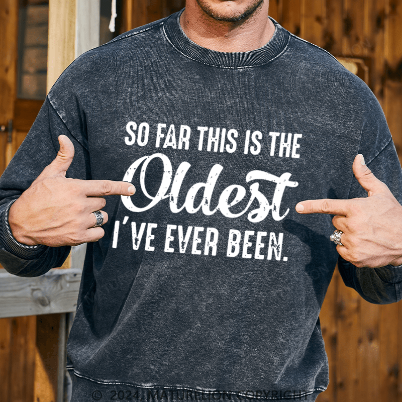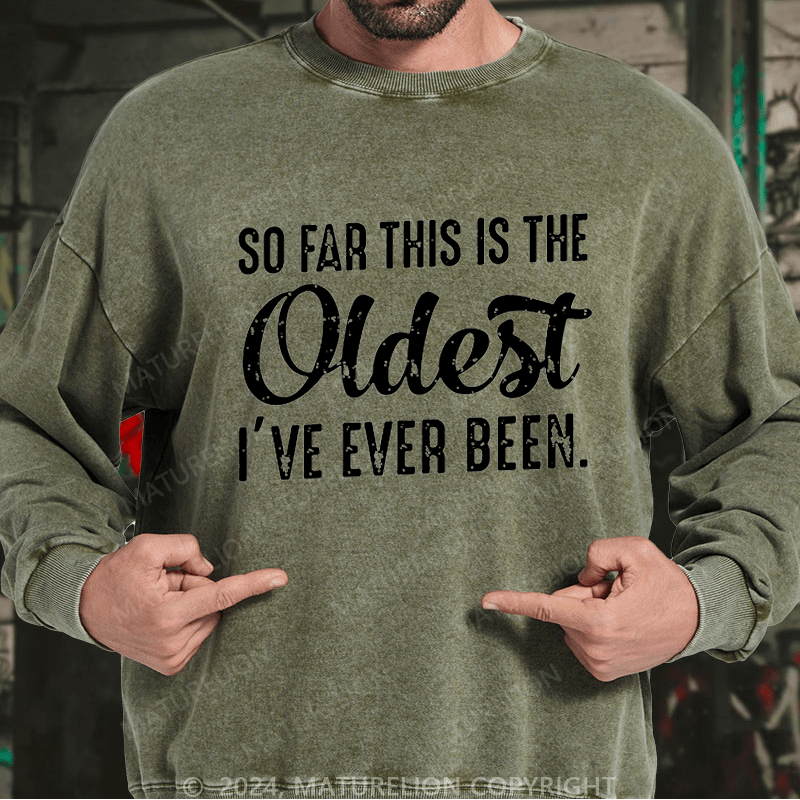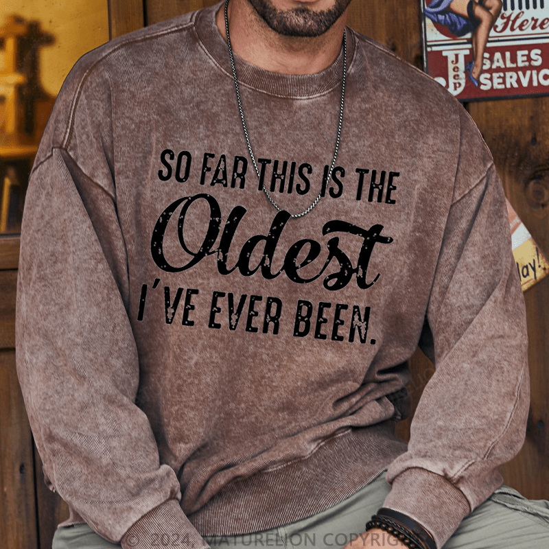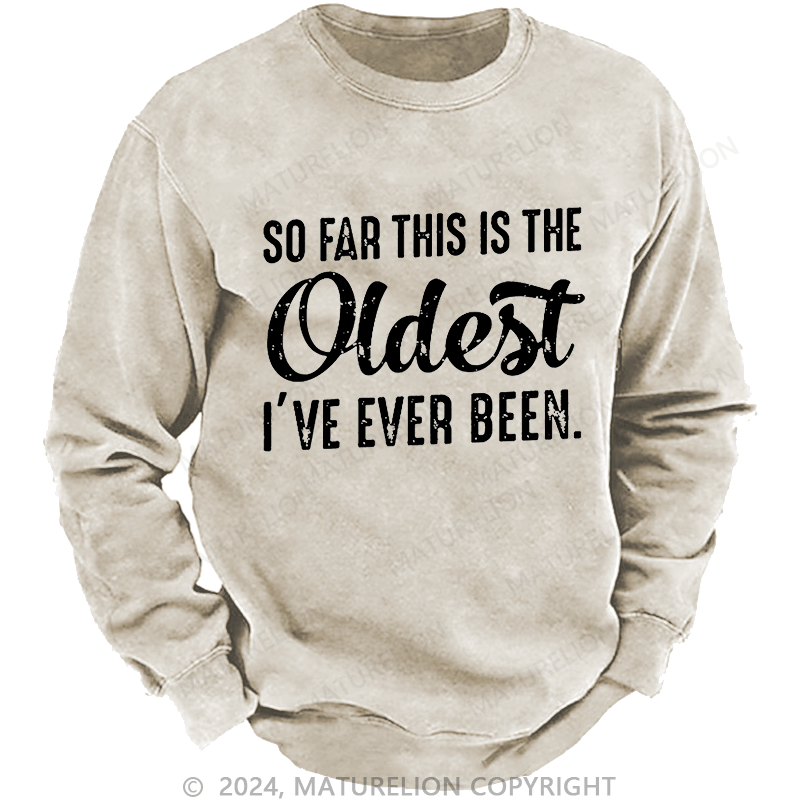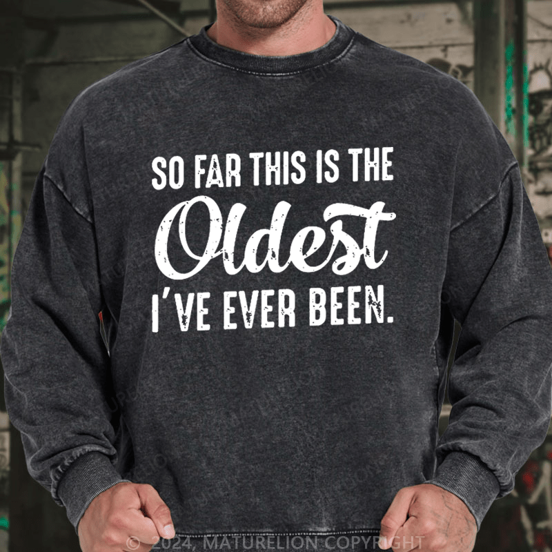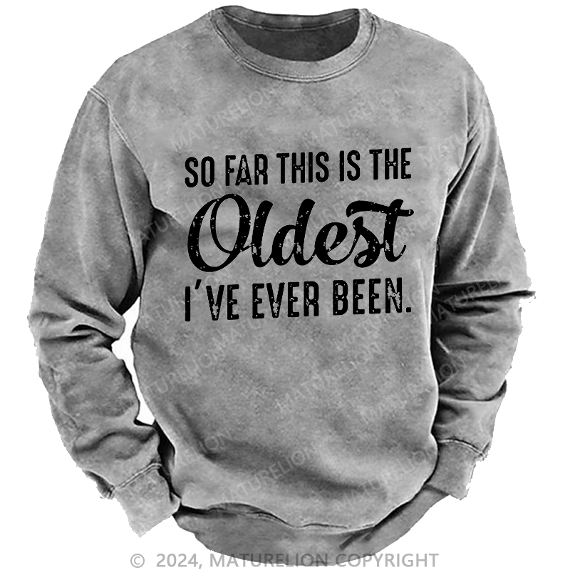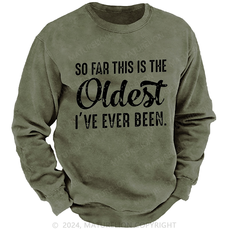 Maturelion Men's Sweatshirt So Far This Is The Oldest I've Ever Been Sweatshirt Custom Washed Sweatshirt