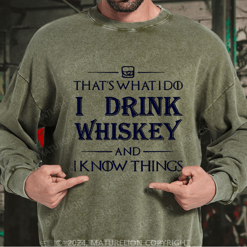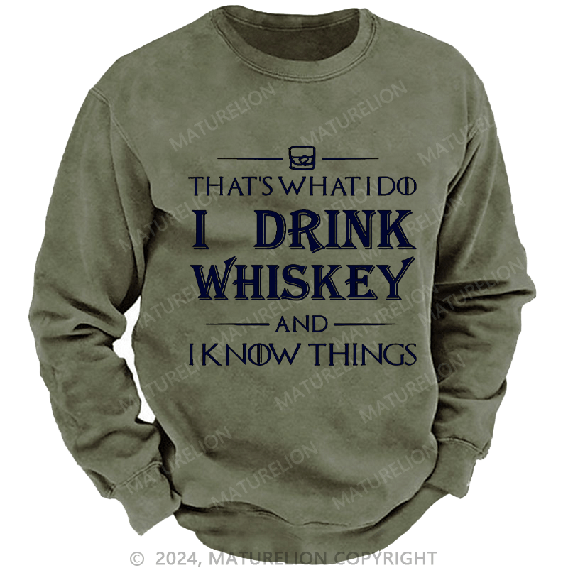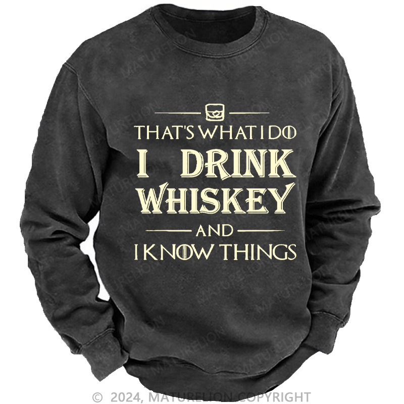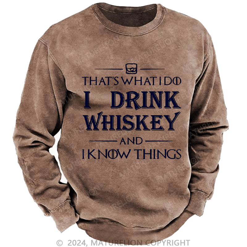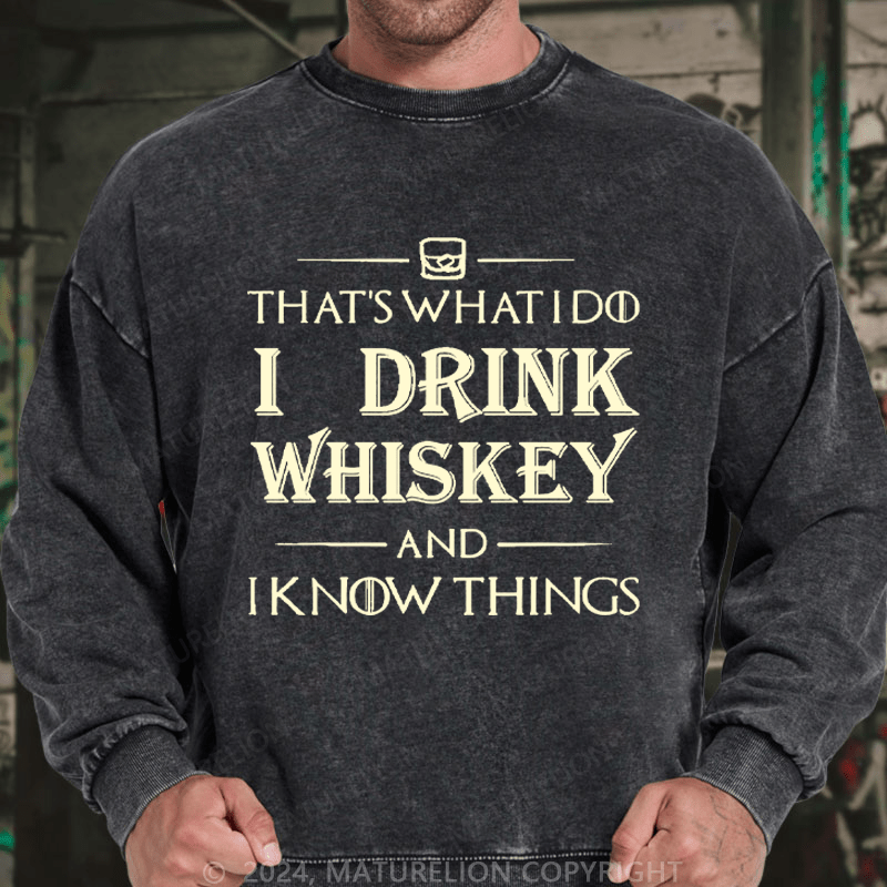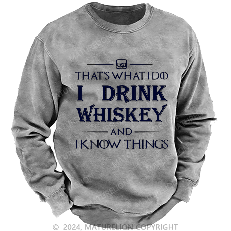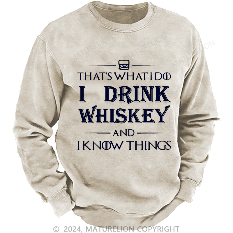 Maturelion Men's Sweatshirt That's What I Do I Drink Whiskey And I know Things Custom Washed Sweatshirt