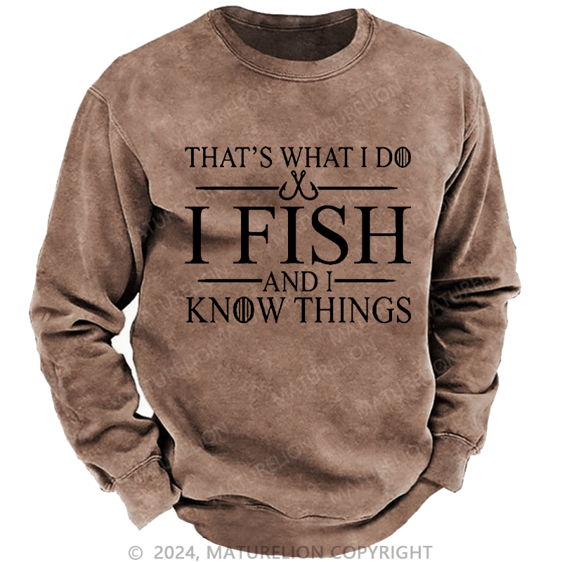 Maturelion Men's Sweatshirt That's What I Do I Fish And I Know Things Custom Washed Sweatshirt