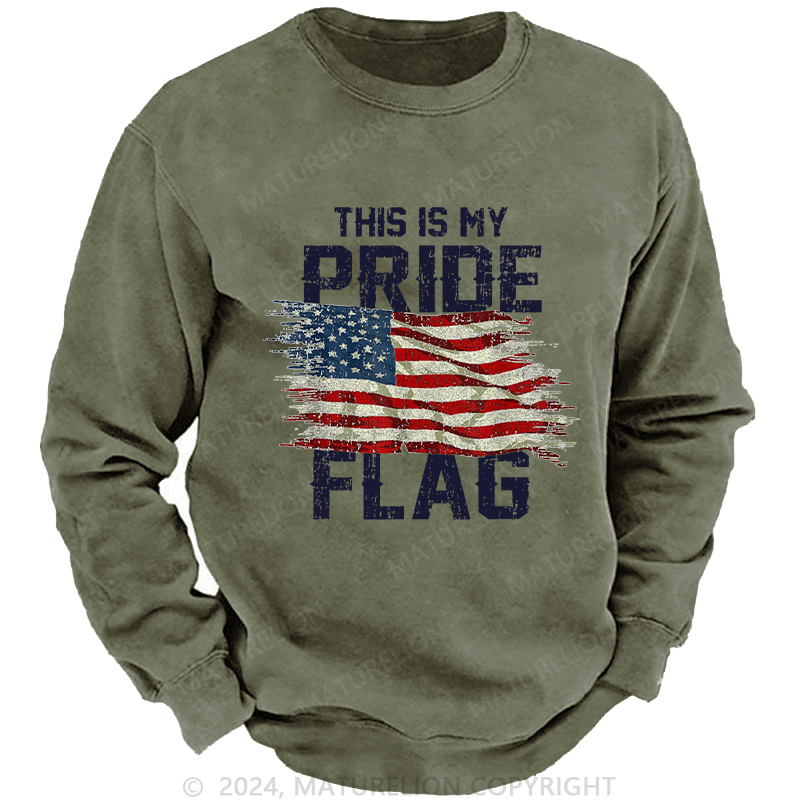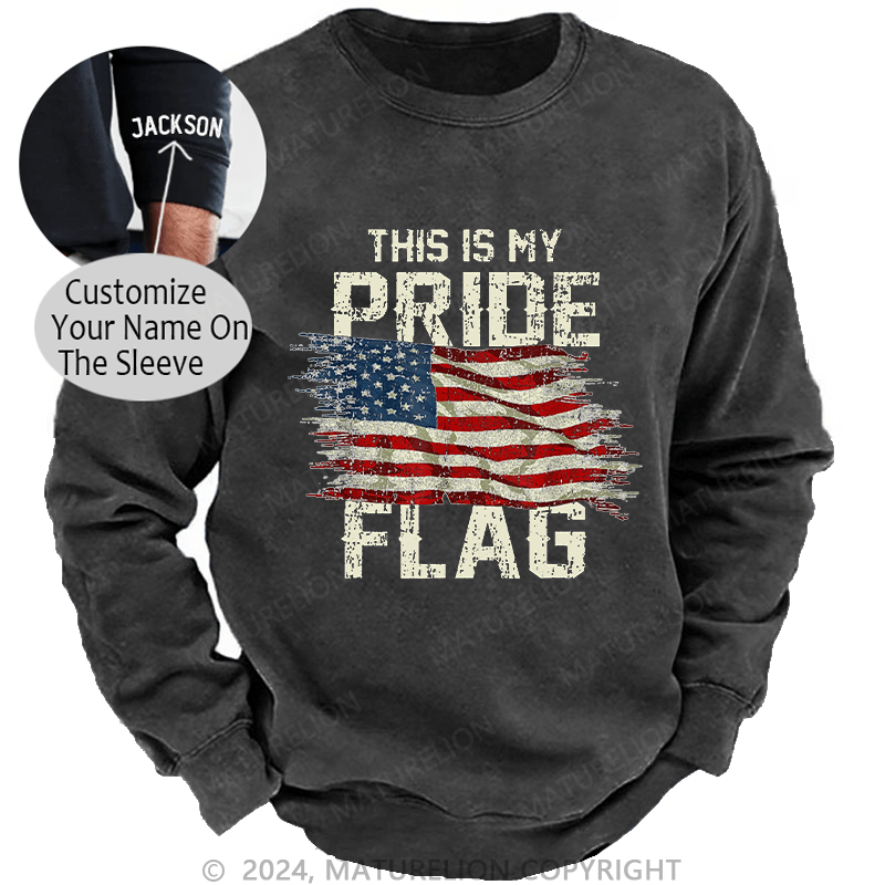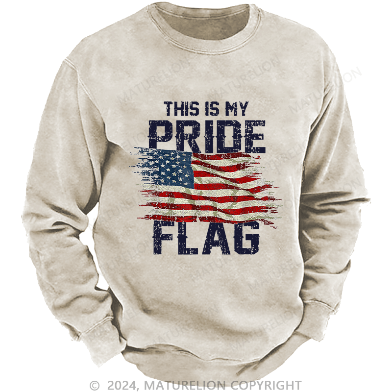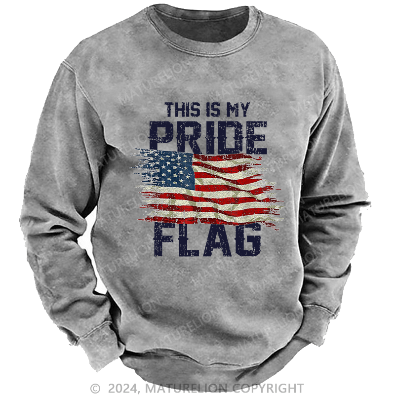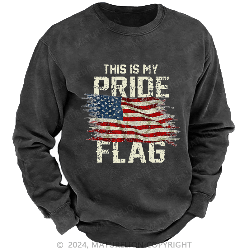 Maturelion Men's Sweatshirt This Is My Proud Flag 4th of July Custom Washed Sweatshirt