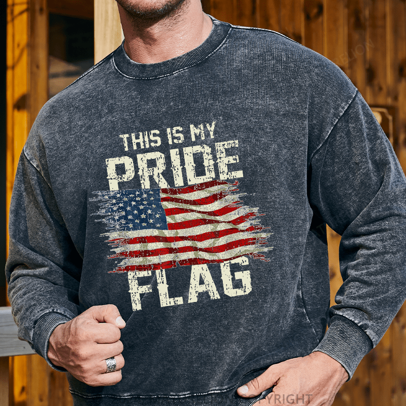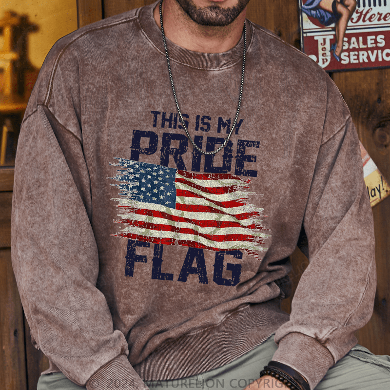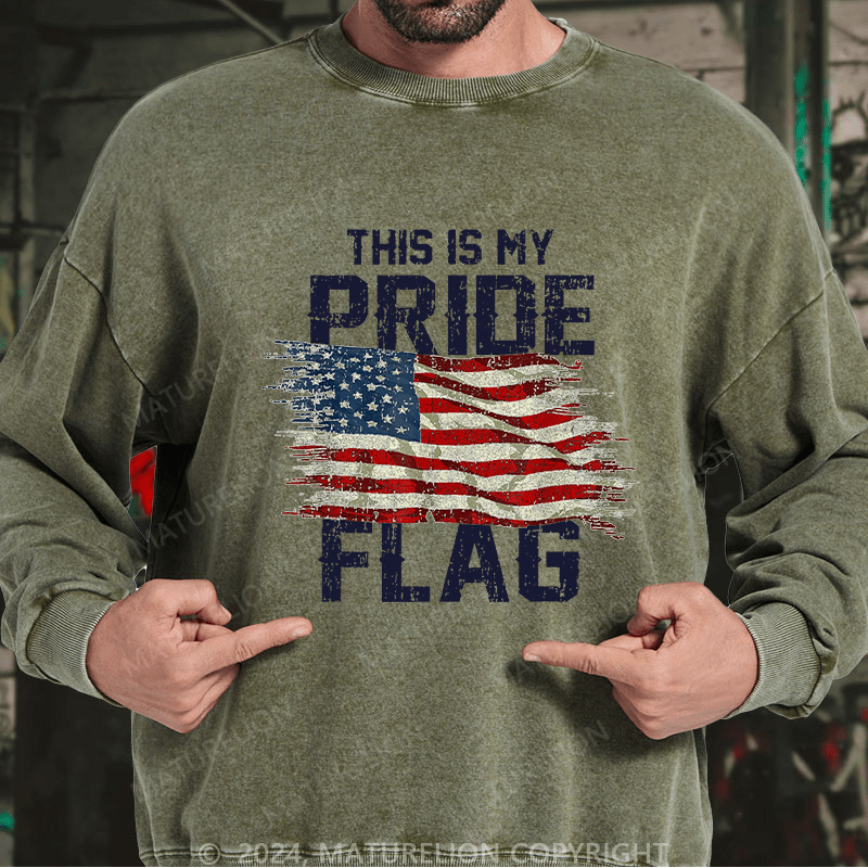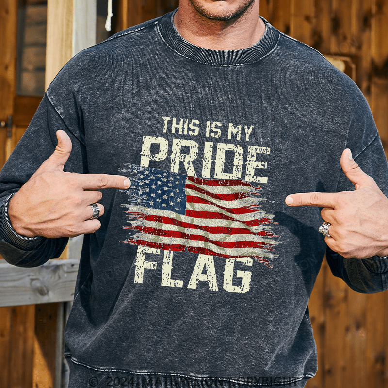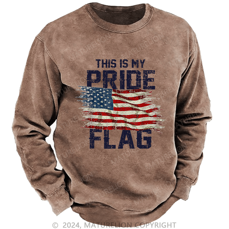 Maturelion Men's Sweatshirt This Is My Proud Flag 4th of July Custom Washed Sweatshirt