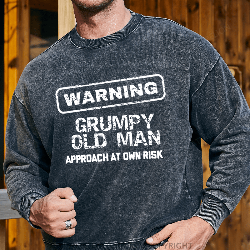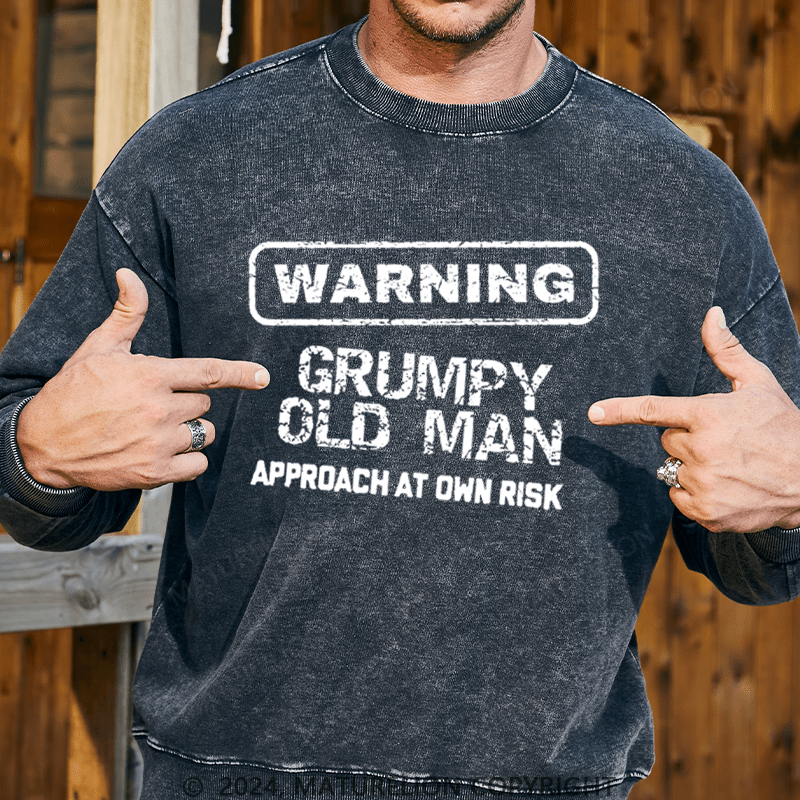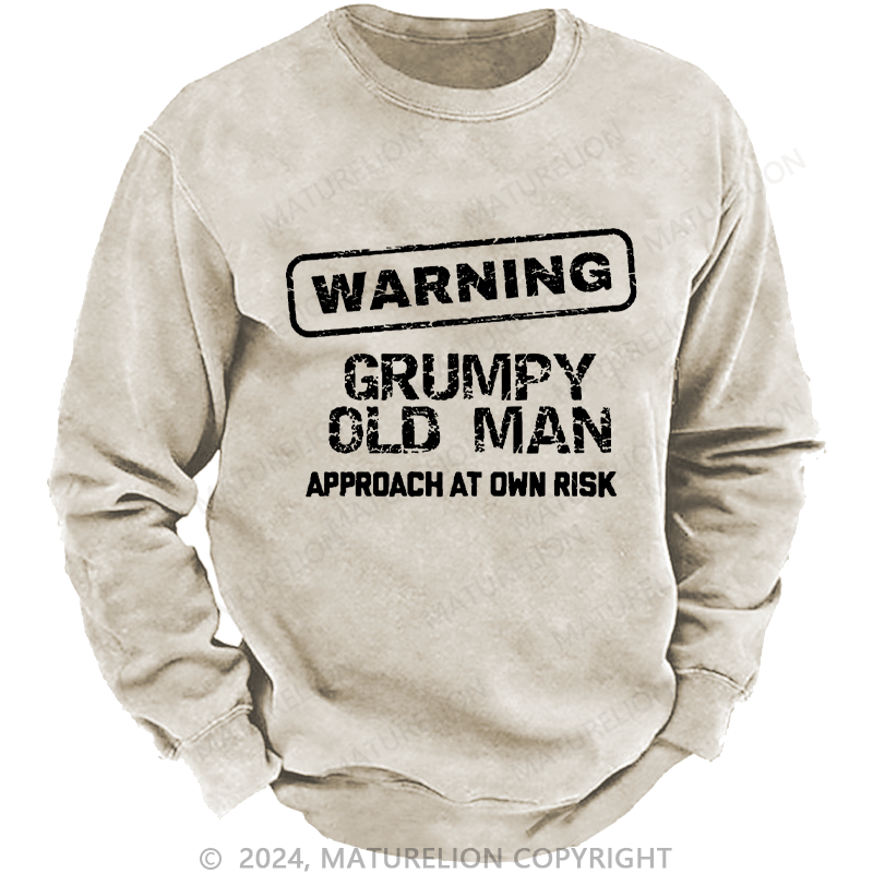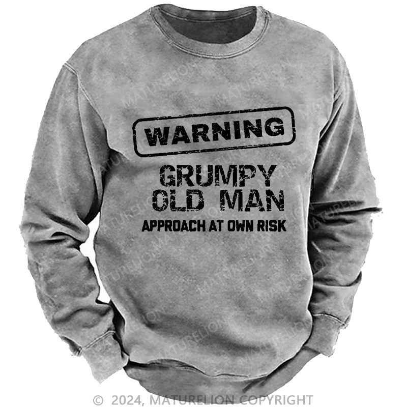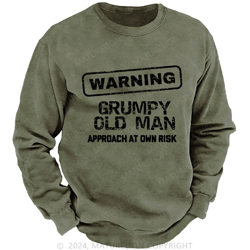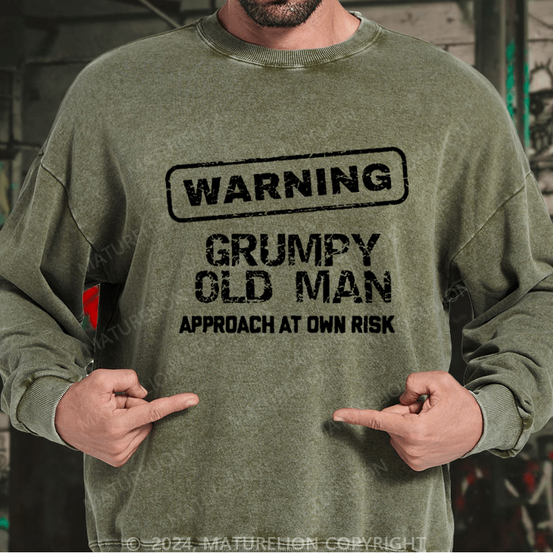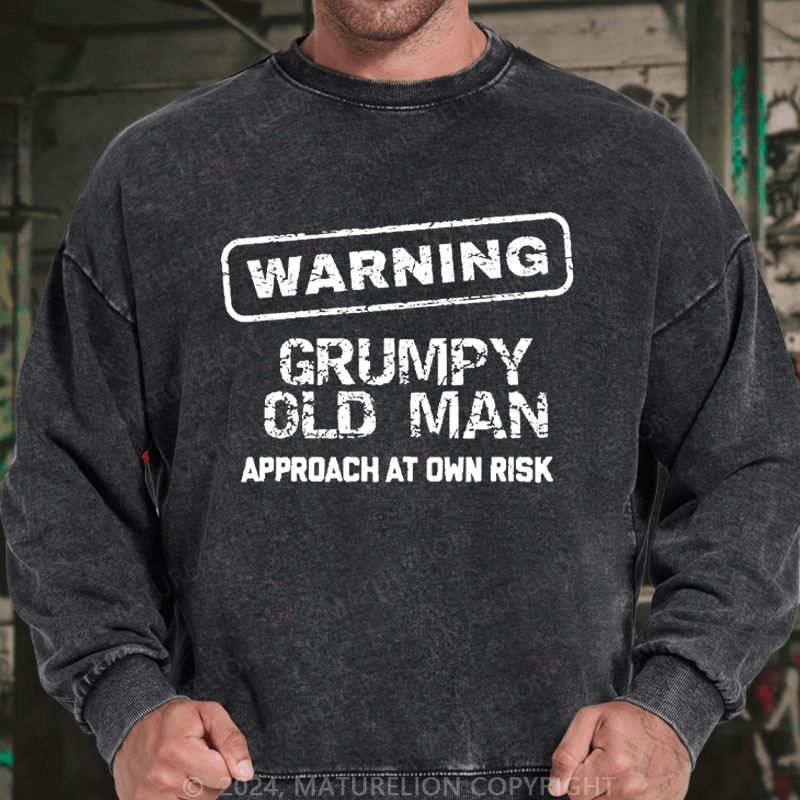 Maturelion Men's Sweatshirt Warning Grumpy Old Man Approach At Own Risk Custom Washed Sweatshirt
