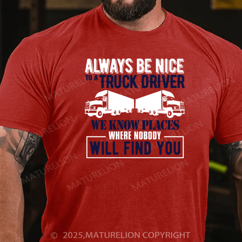 Maturelion Men's T-Shirt Always be Nice to a truck driver. Cotton T-Shirt