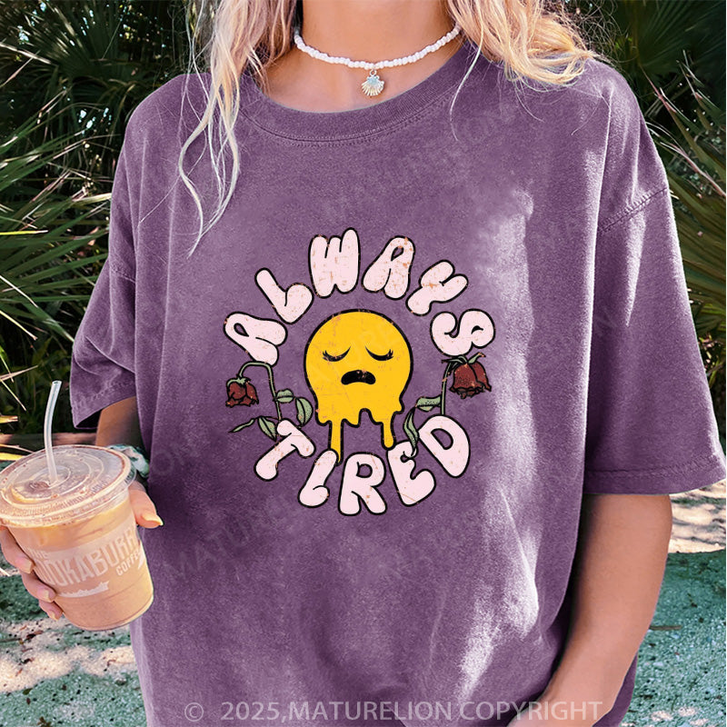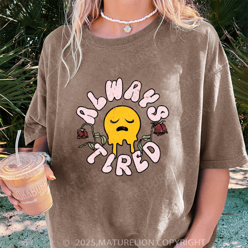 Maturelion Women's T-shirt Always Tired DTG Washed T-shirt