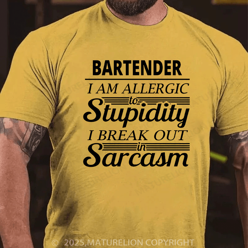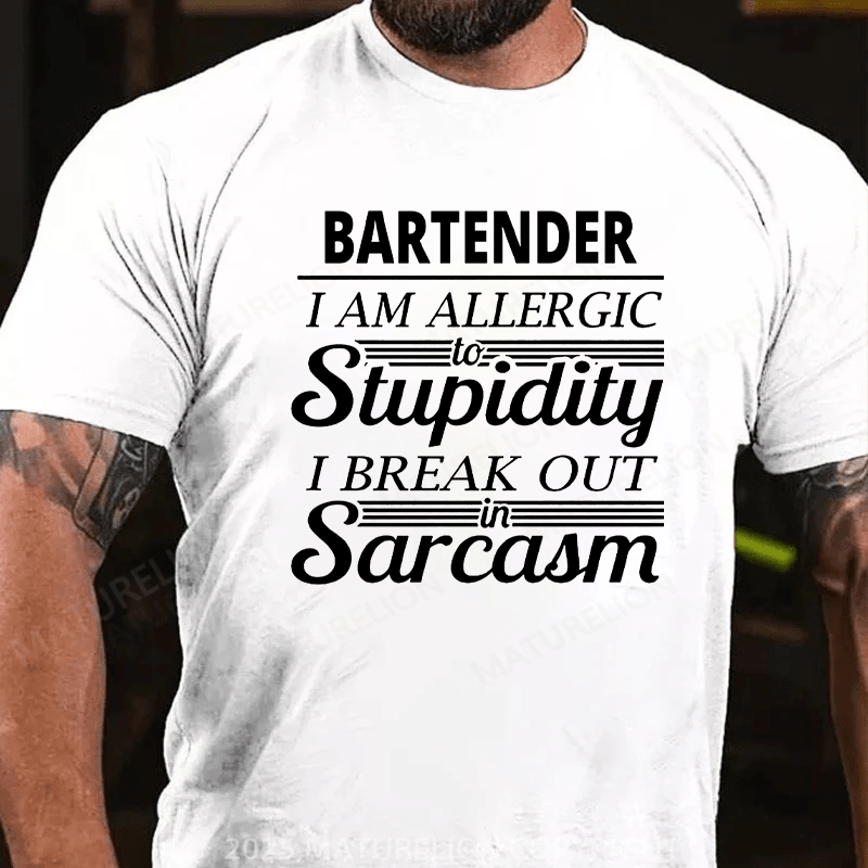 Maturelion Men's T-Shirt Bartender I am Allergic Cotton T-Shirt
