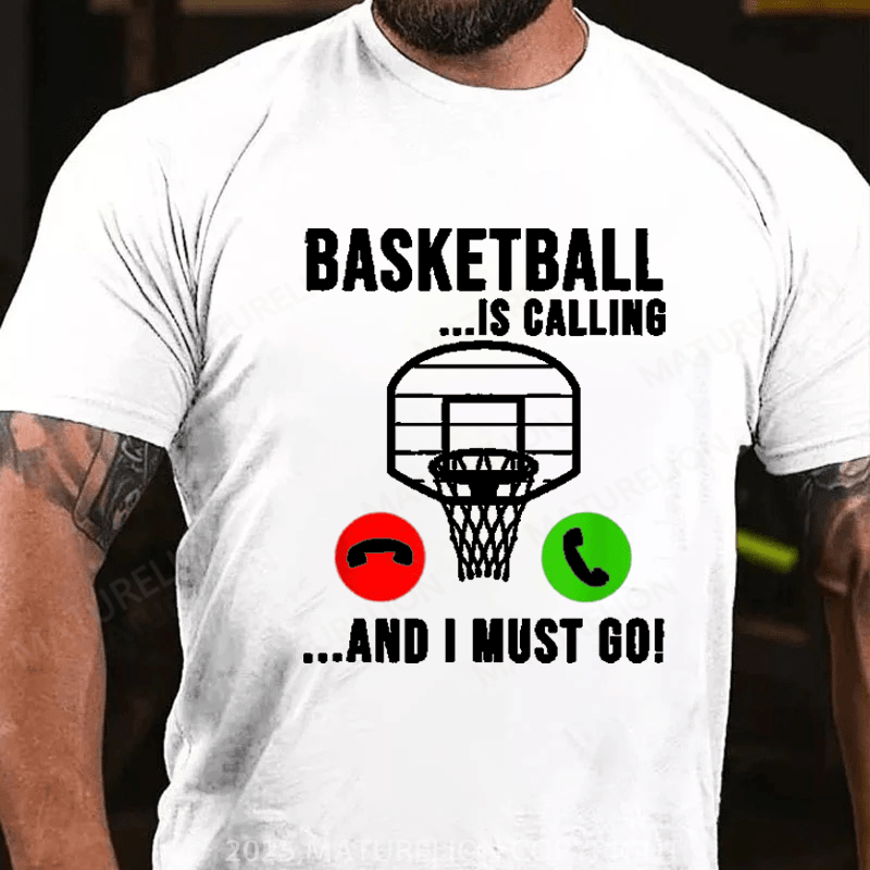 Maturelion Men's T-Shirt Basketball Is Calling - Basketball Funny Basketball Player Cotton T-Shirt