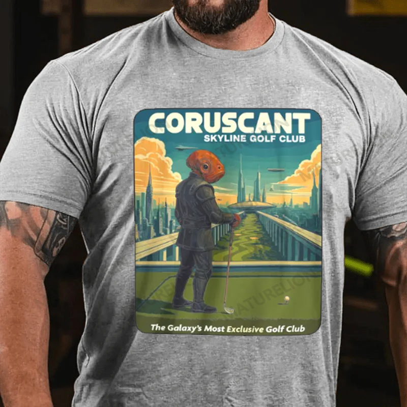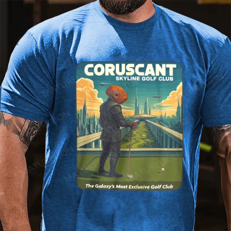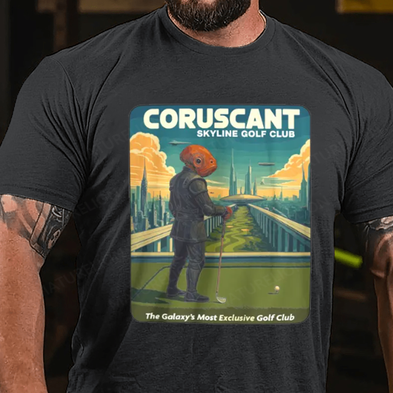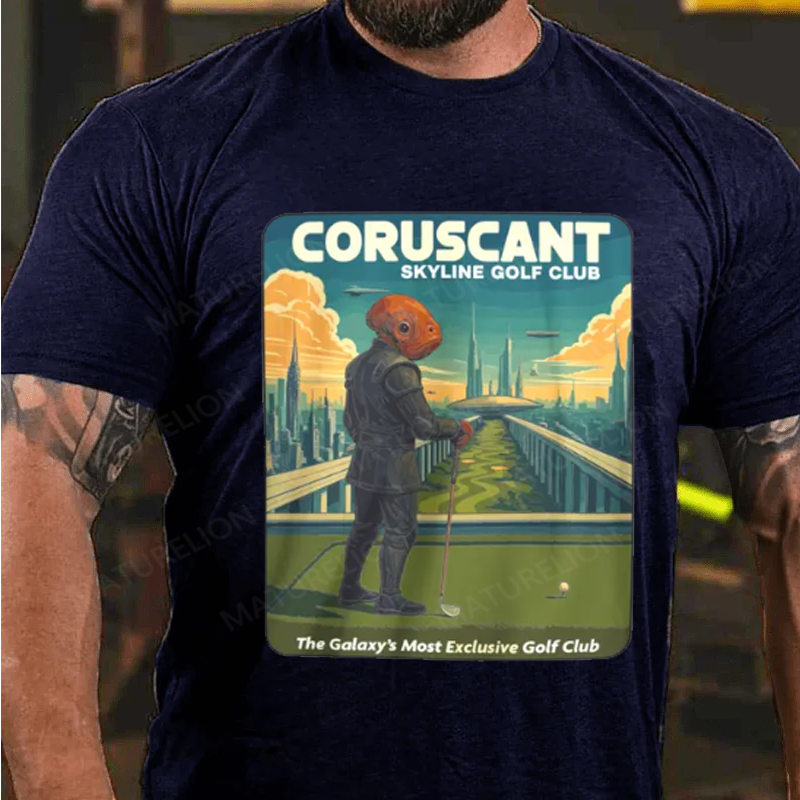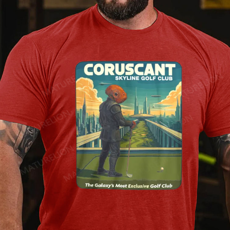 Maturelion Men's T-Shirt Coruscant Skyline Golf Club Cotton T-Shirt