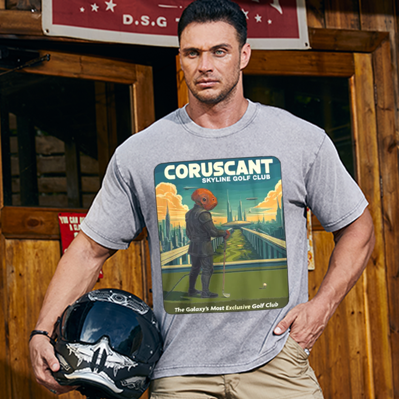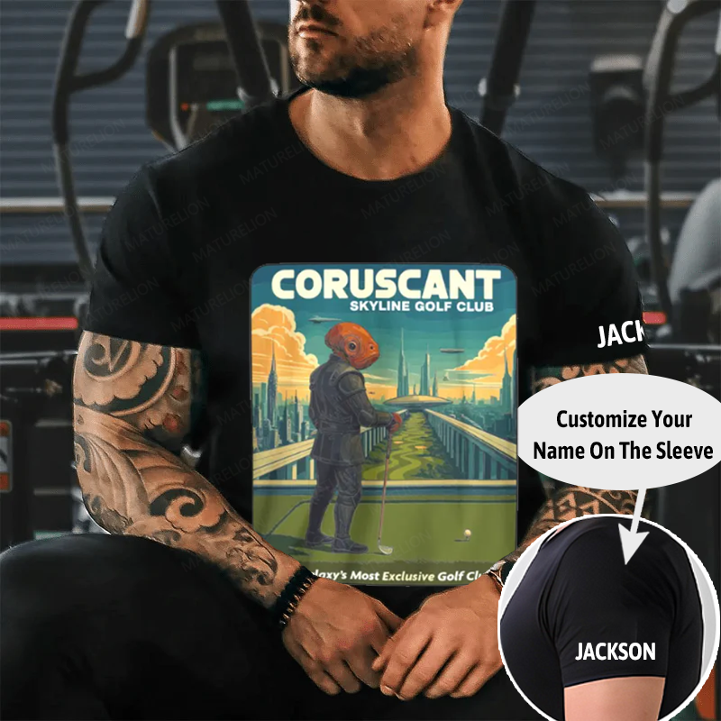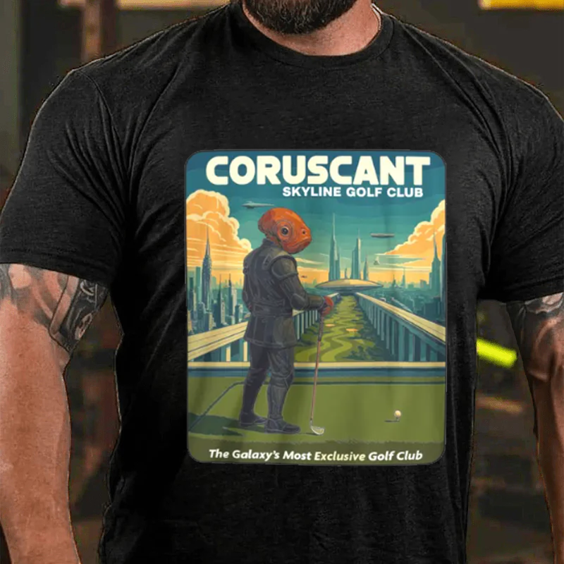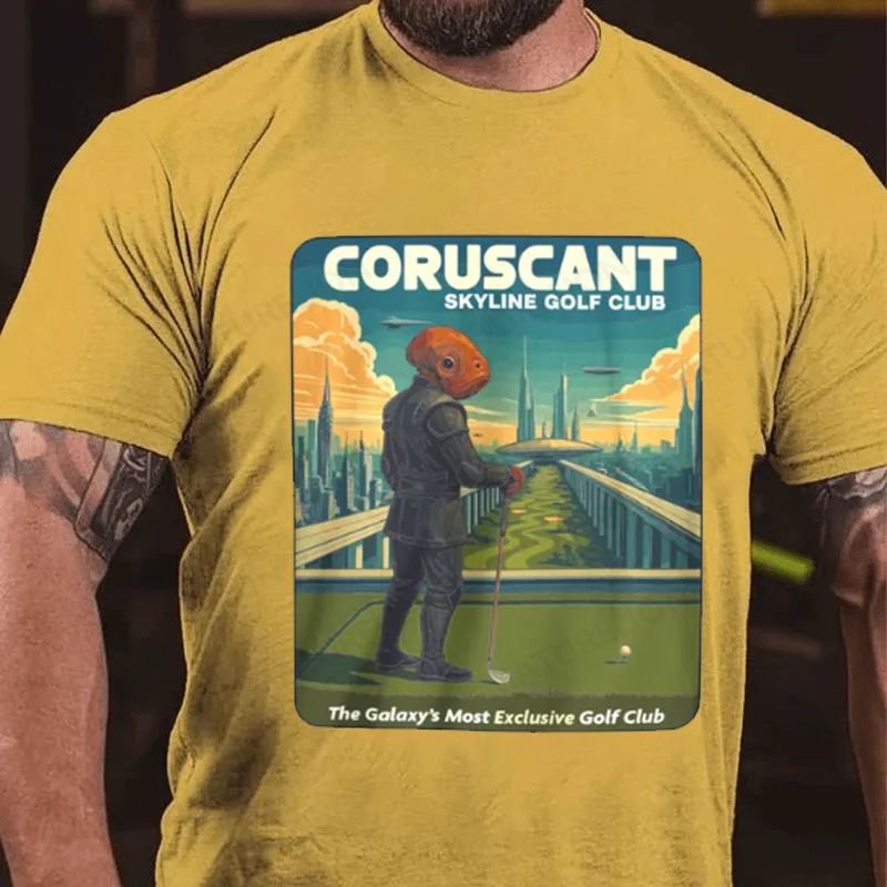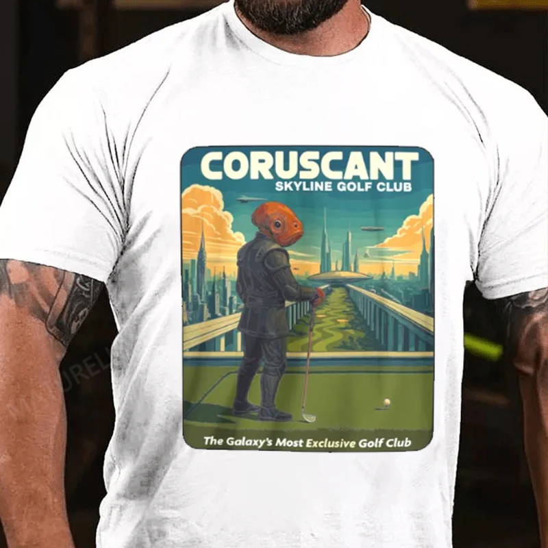 Maturelion Men's T-Shirt Coruscant Skyline Golf Club Cotton T-Shirt