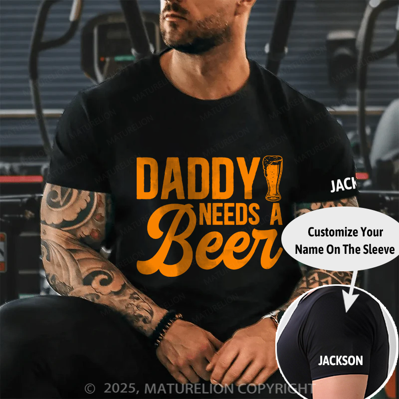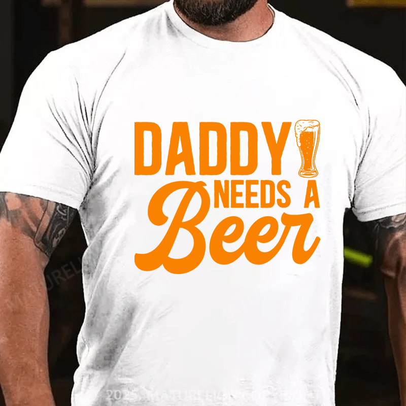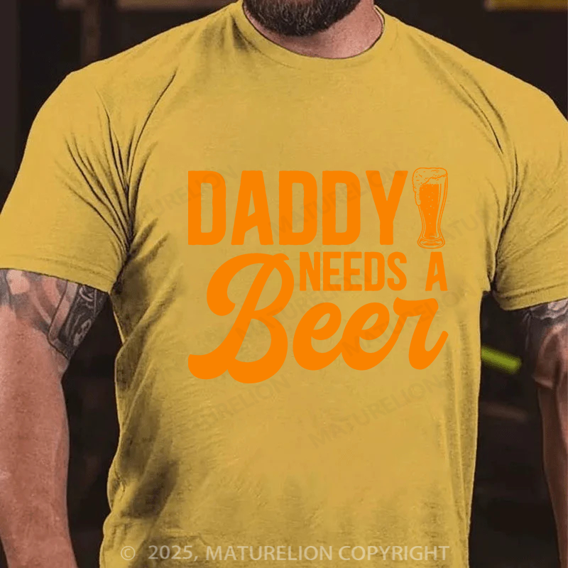 Maturelion Men's T-shirt Daddy Needs A Beer Father's Day T-shirt