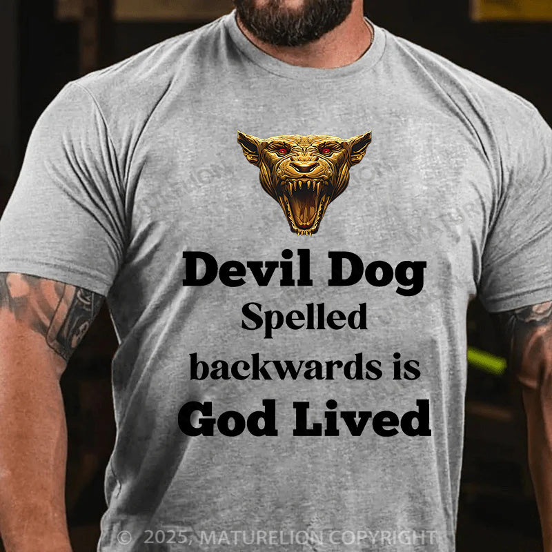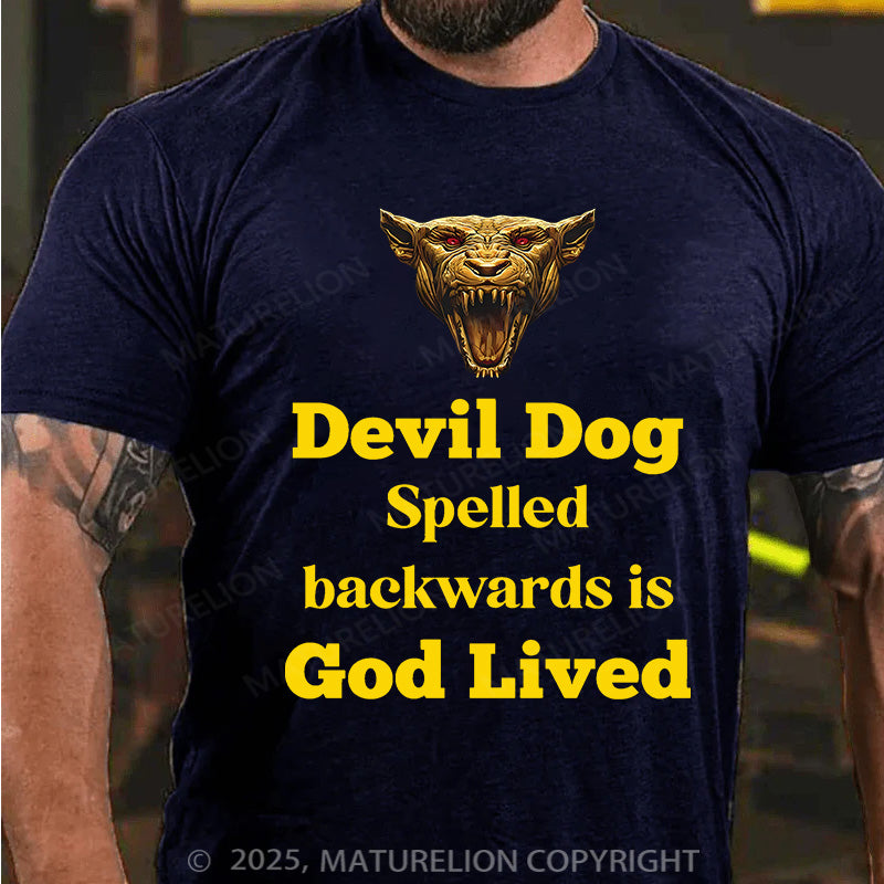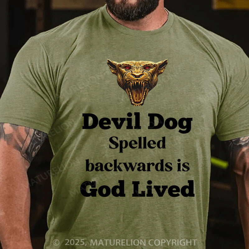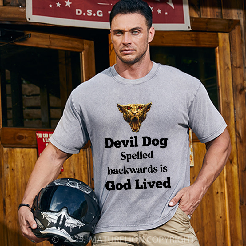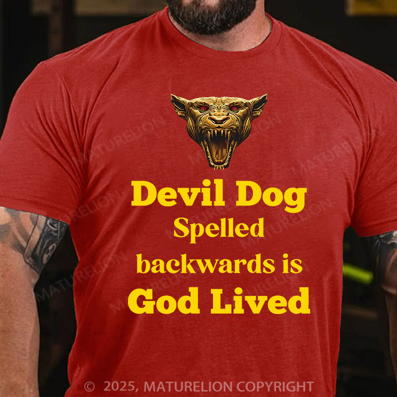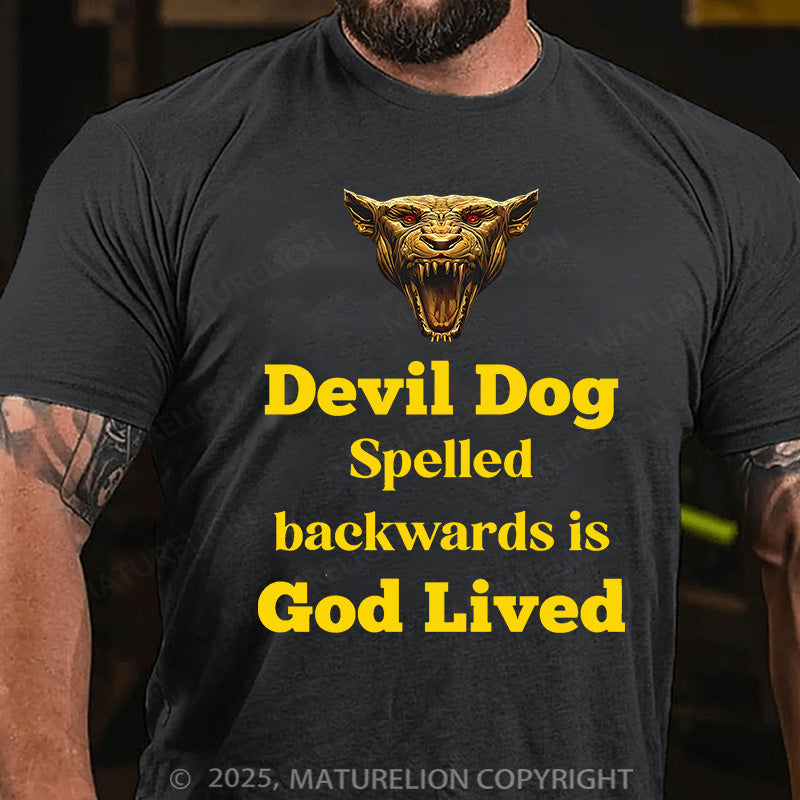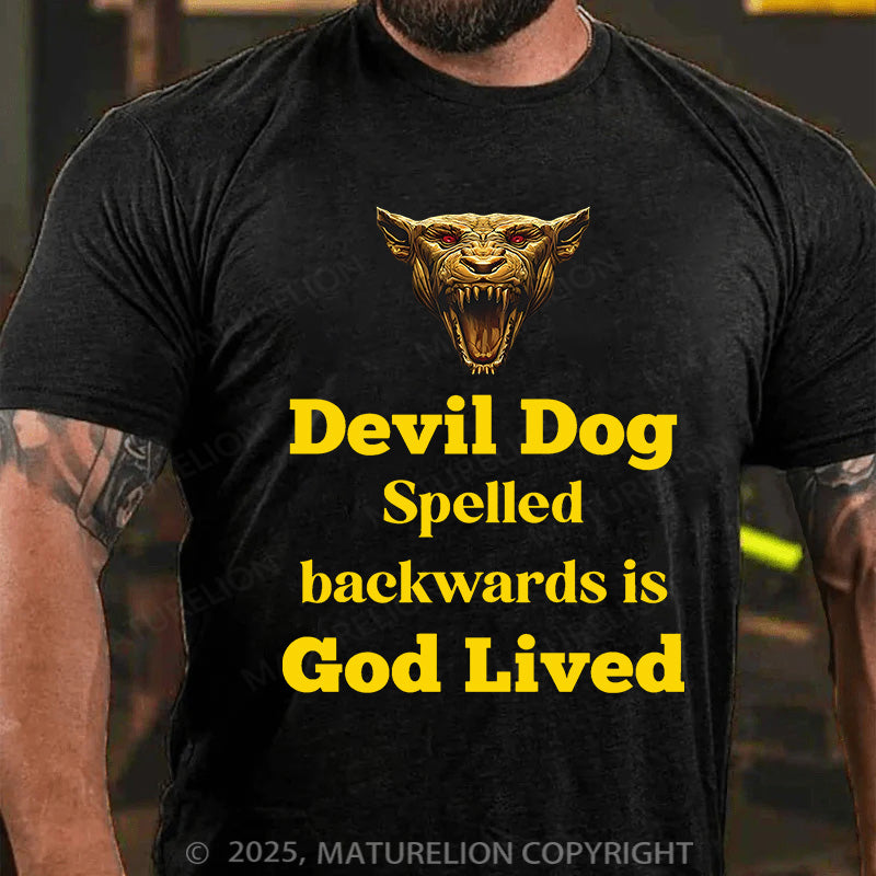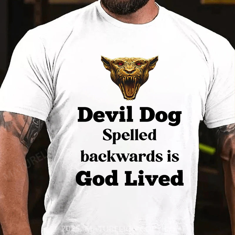 Maturelion Men's T-shirt Devil Dog Spelled backwards is God lived Cotton T-shirt