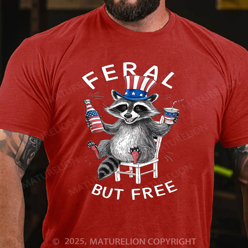 Maturelion Men's T-shirt Feral But Free 4th Of July T-shirt