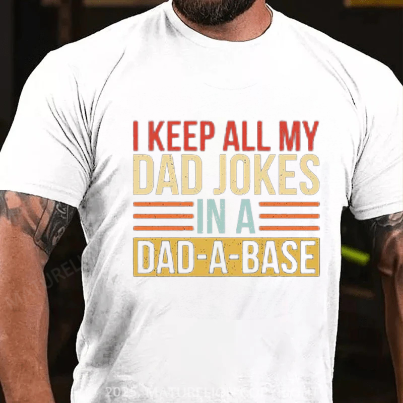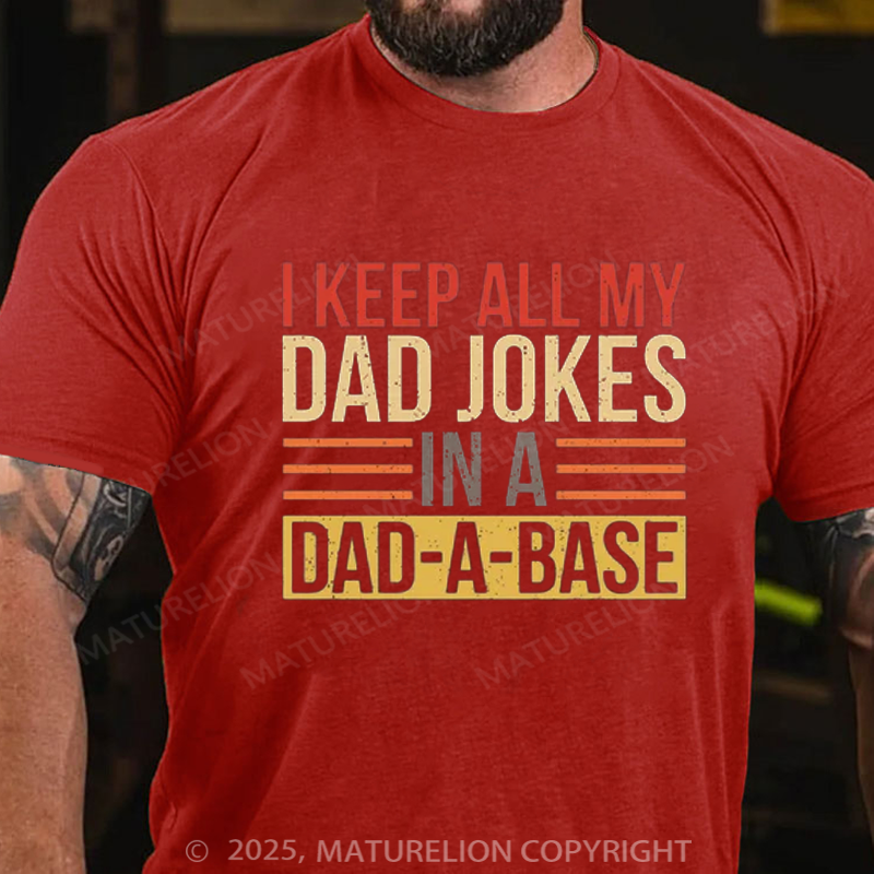 Maturelion Men's T-shirt I Keep All My Dad Jokes In A Dad-a-base Father's Day T-shirt