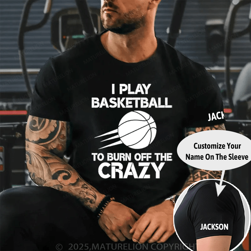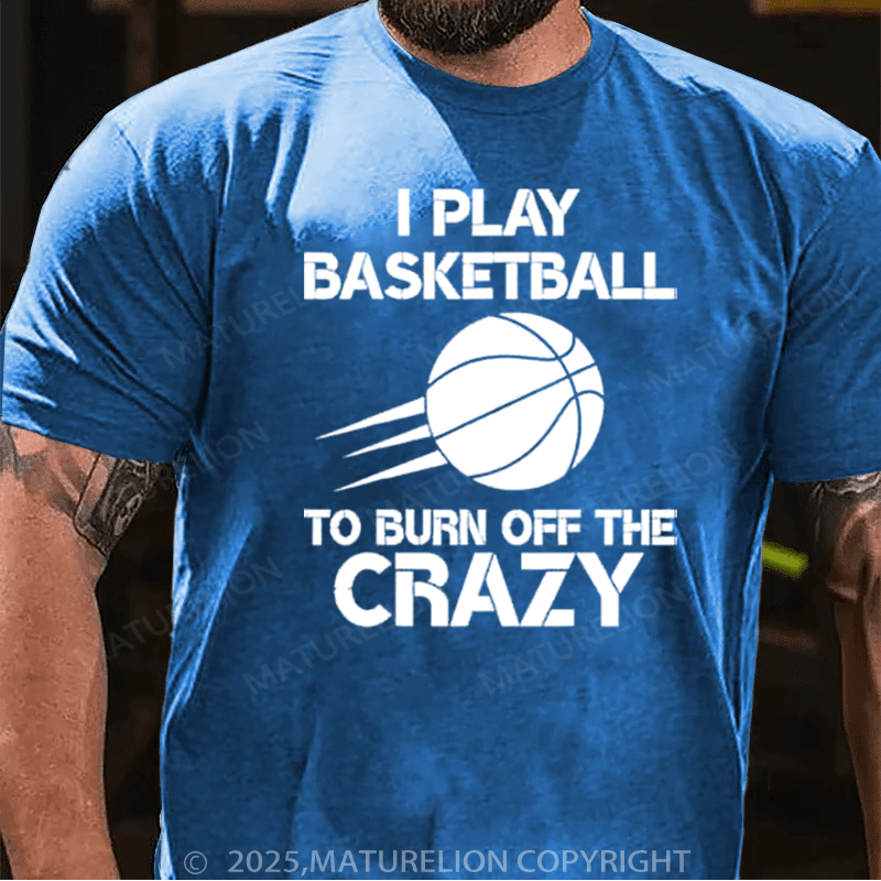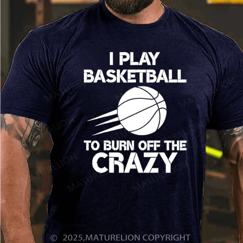 Maturelion Men's T-Shirt I PLAY BASKETBALL TO BURN OFF THE CRAZY Cotton T-Shirt