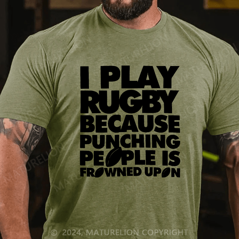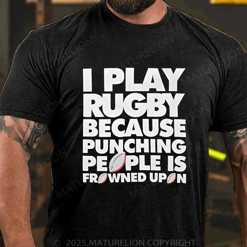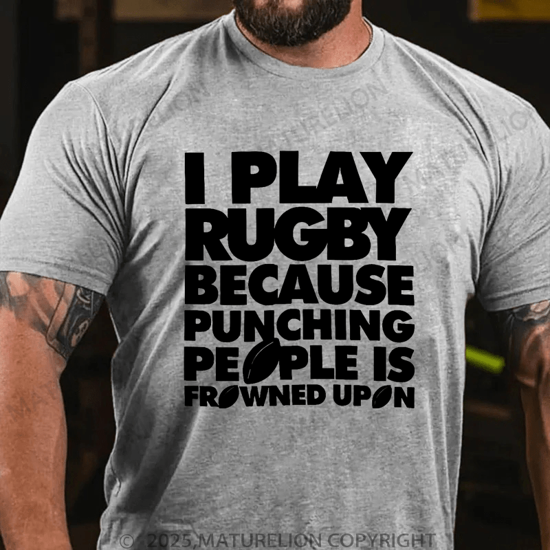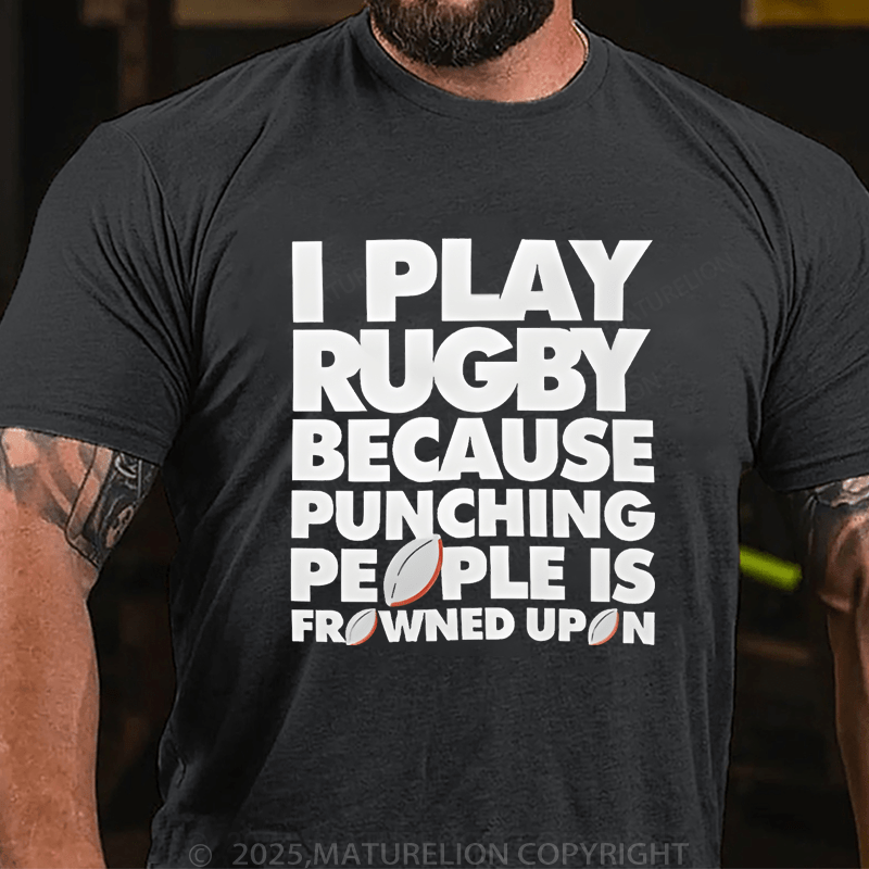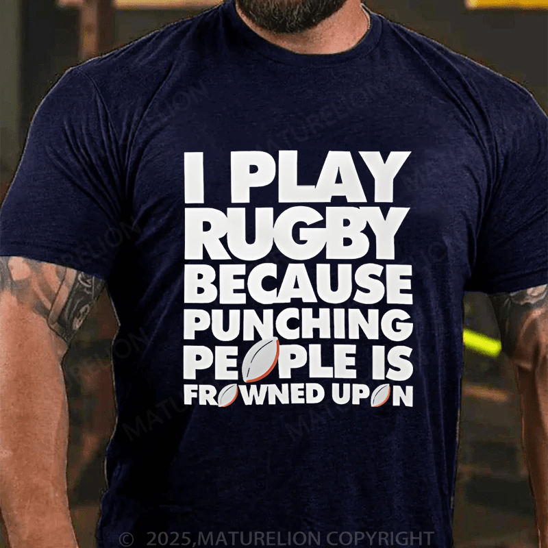 Maturelion Men's T-Shirt I Play Rugby Because Punching People Is Frowned Upon Funny Sport Player T-Shirt (Free Customization)