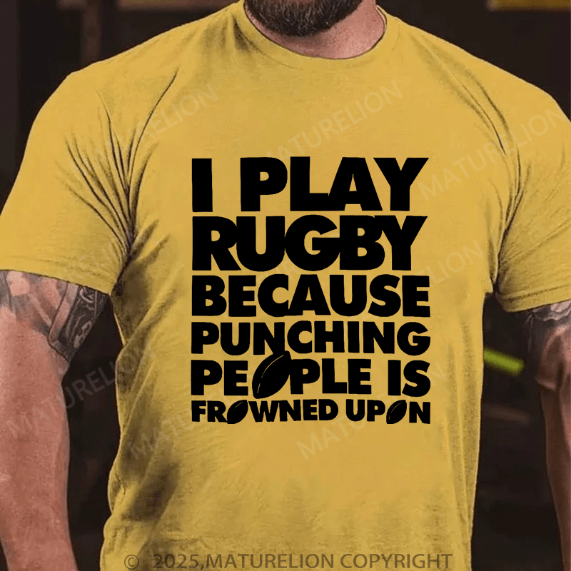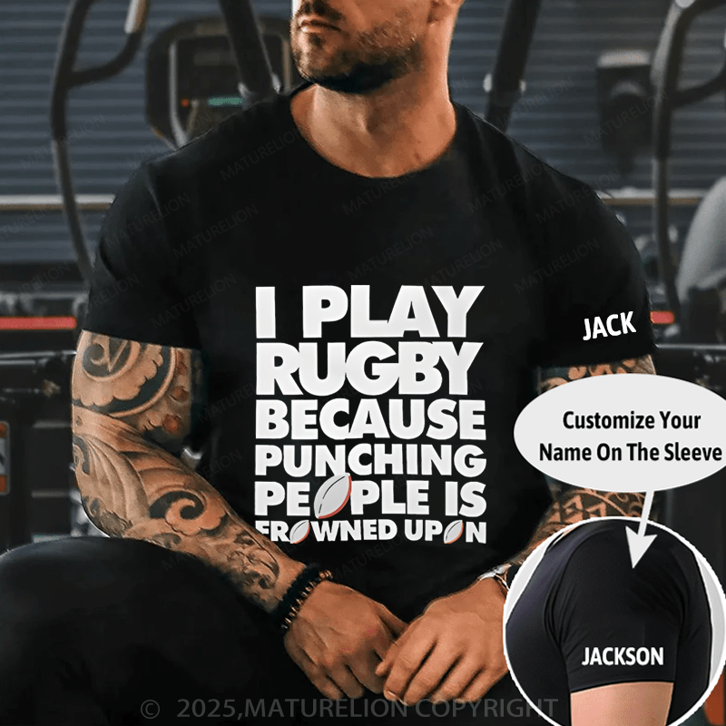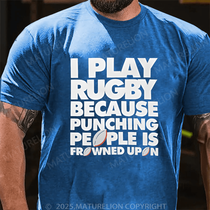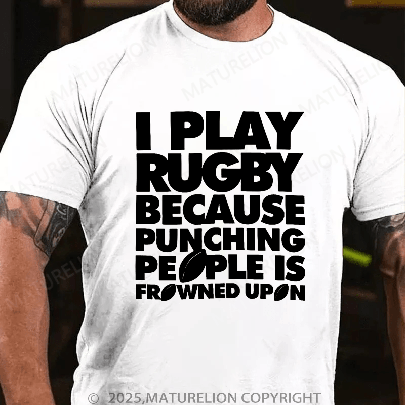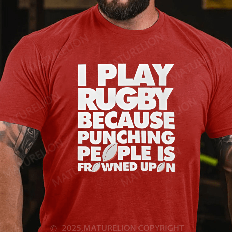 Maturelion Men's T-Shirt I Play Rugby Because Punching People Is Frowned Upon Funny Sport Player T-Shirt (Free Customization)