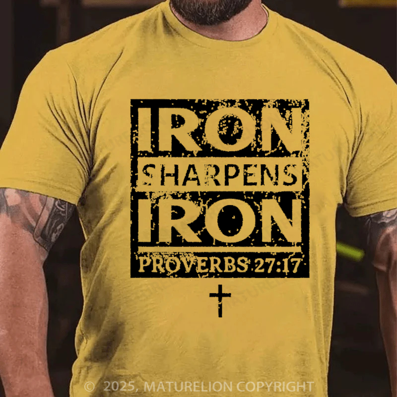 Maturelion Men's T-shirt Iron Sharpens Iron Proverbs Bible Cotton T-shirt