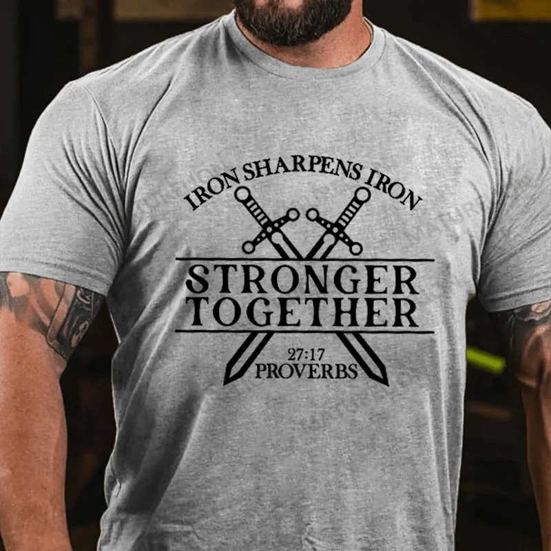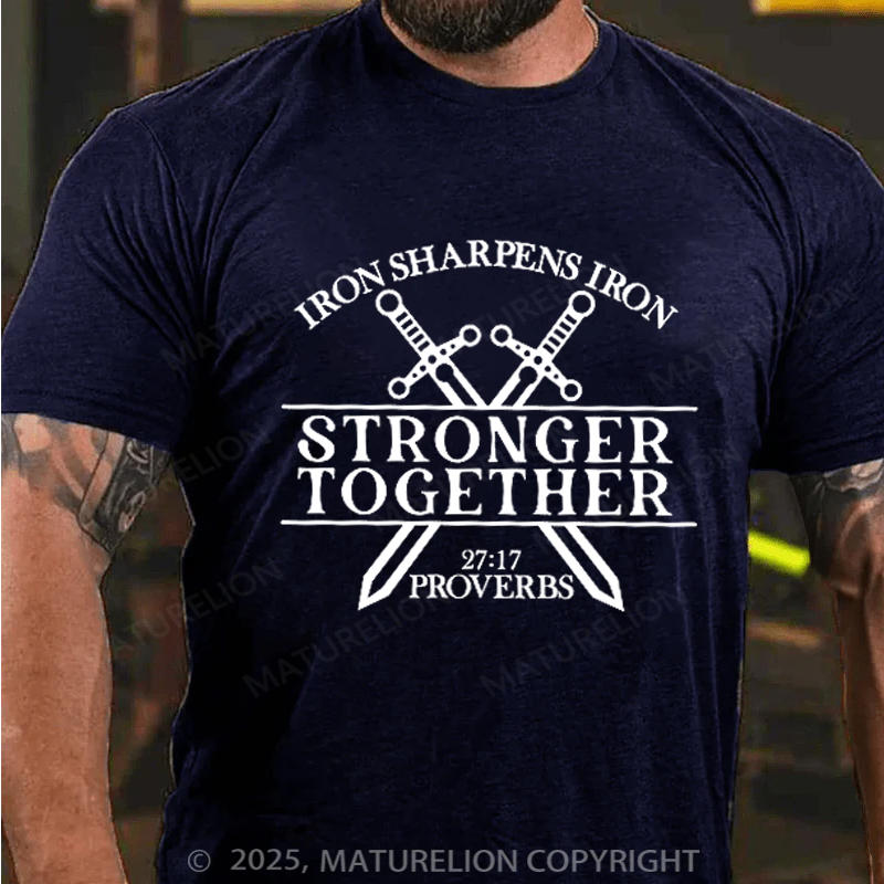 Maturelion Men's T-shirt Iron Sharpens Iron Stronger Than Together Proverbs 27 17 Cotton T-shirt