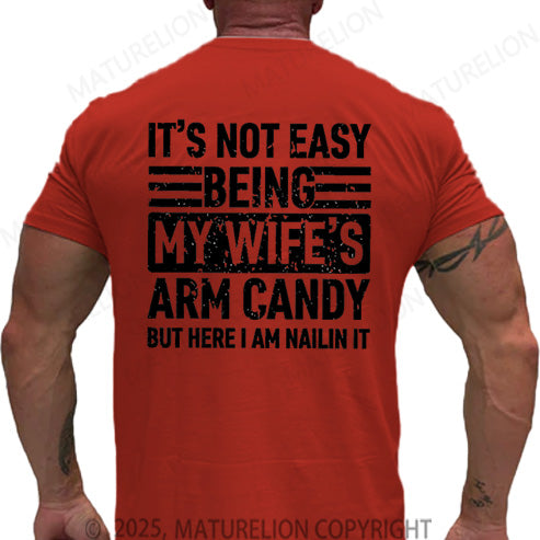 Maturelion Men's T-shirt It's Not Easy Being My Wife's Arm Candy But Here I'm Nailing It Cotton T-shirt