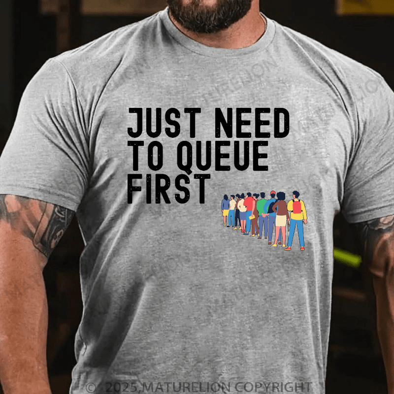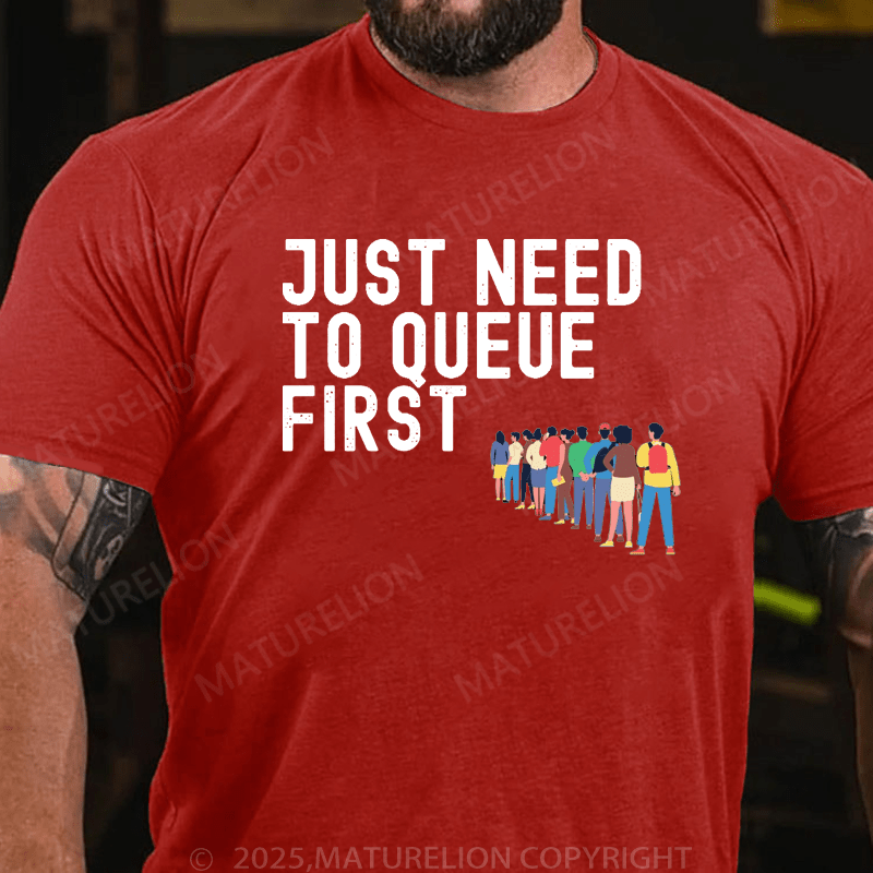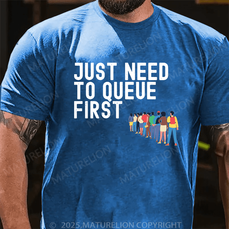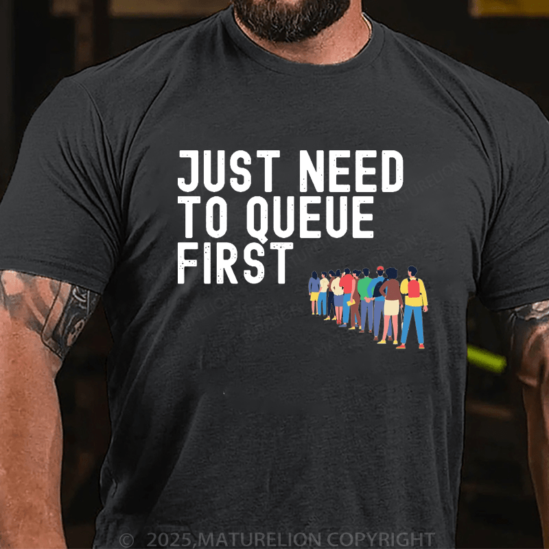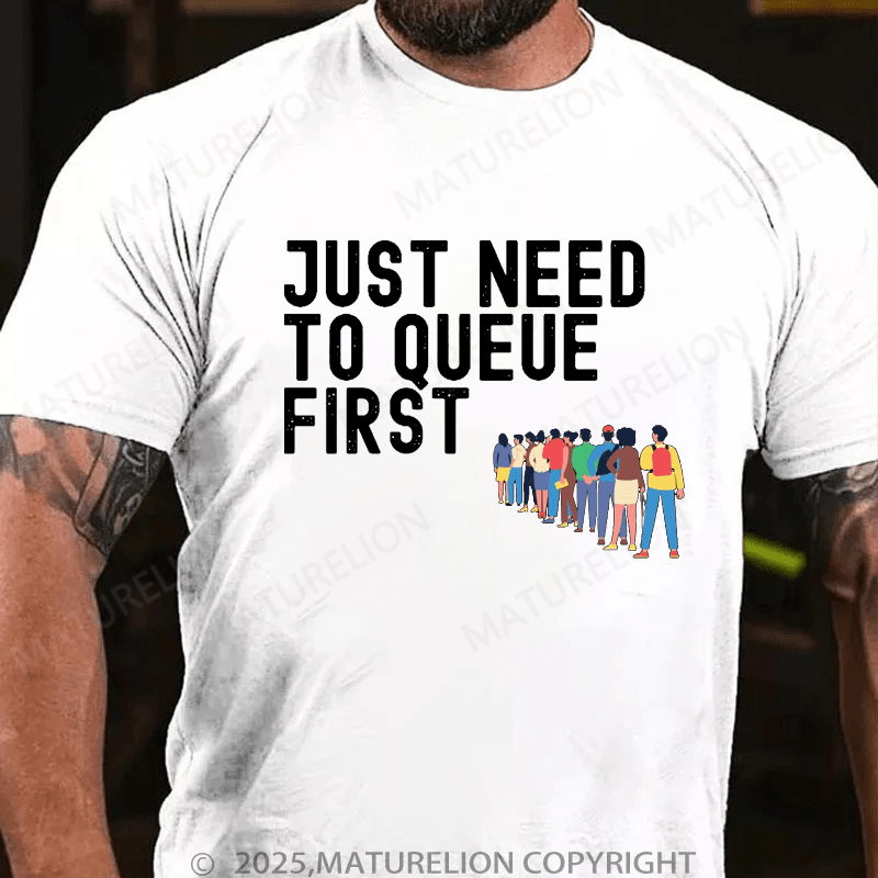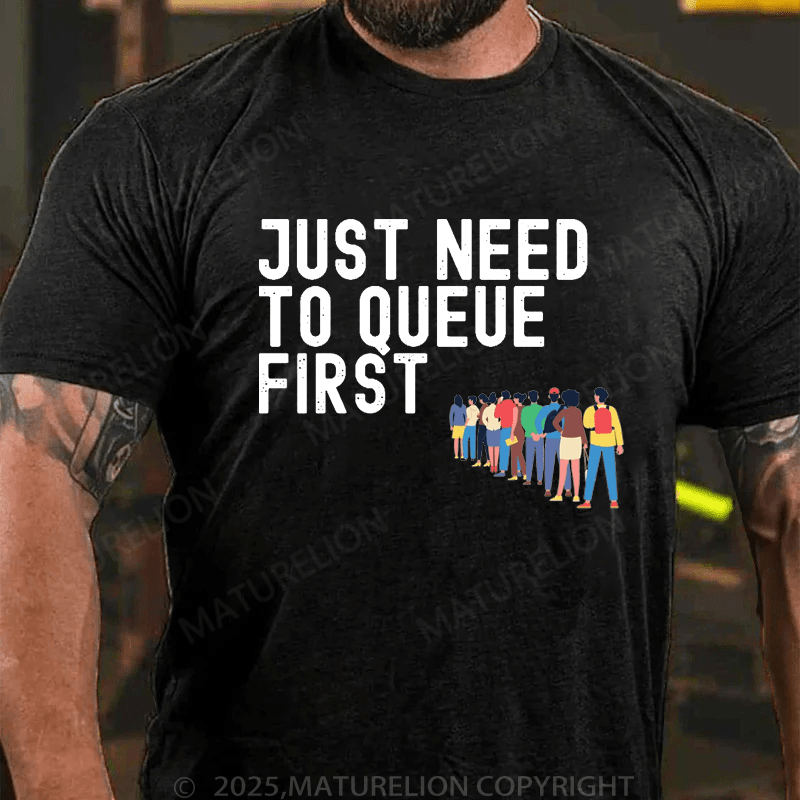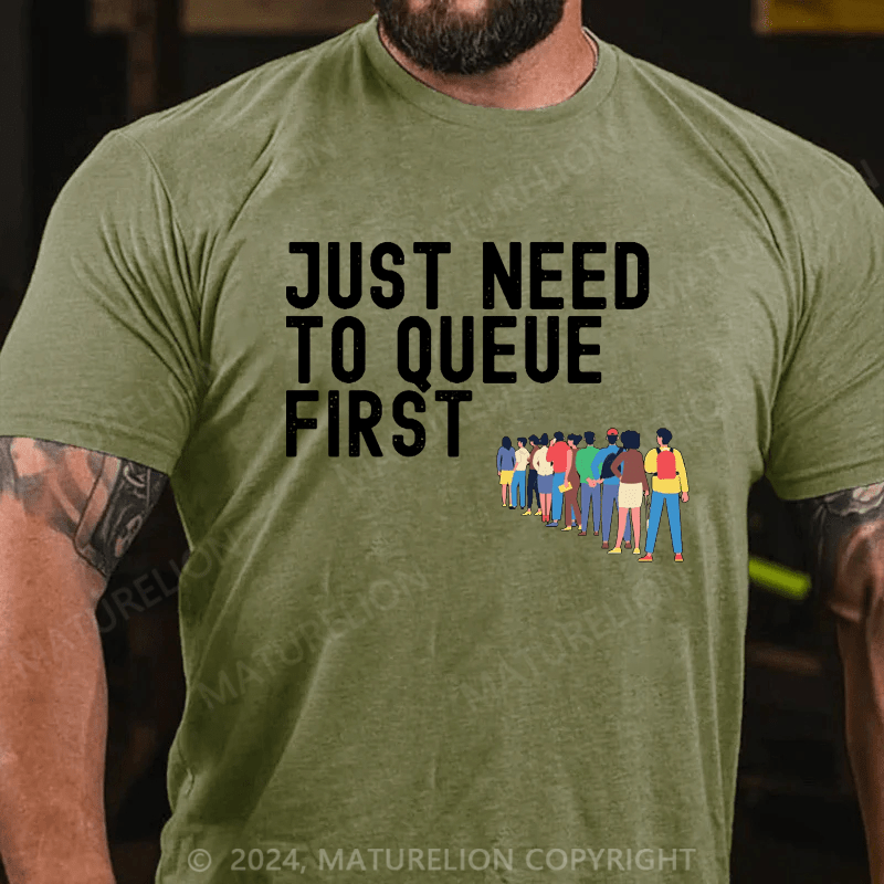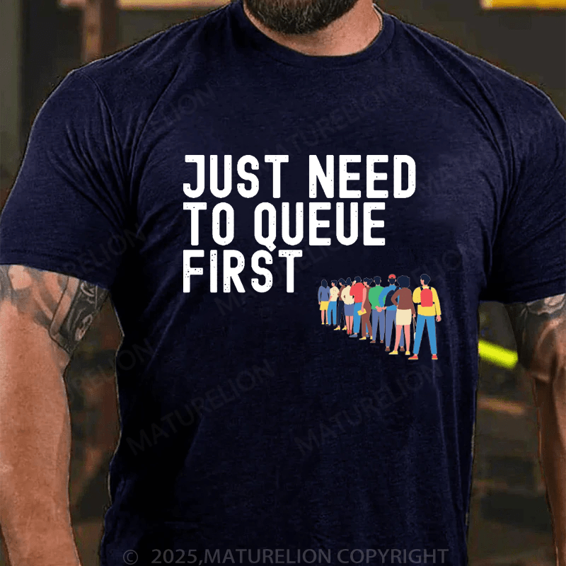 Maturelion Men's T-Shirt Just Need To Queue First T-Shirt (Free Customization)