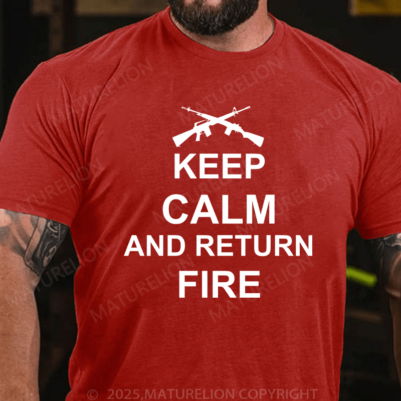 Maturelion Men's T-Shirt Keep Calm And Return Fire T-Shirt (Free Customization)