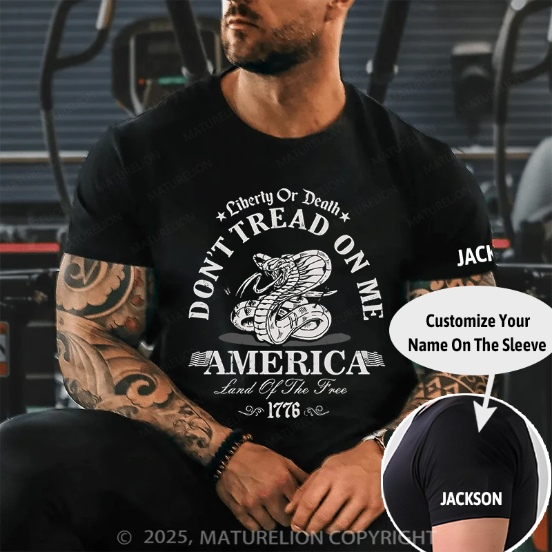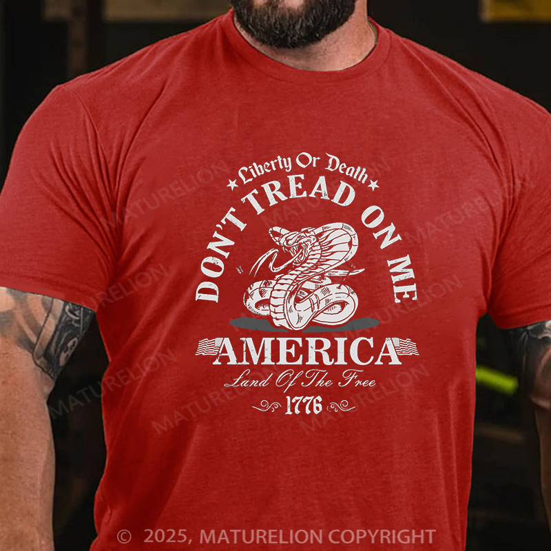 Maturelion Men's T-shirt Liberty or death Dont tread on me America land of the free 1776 Essential Cotton T-shirt
