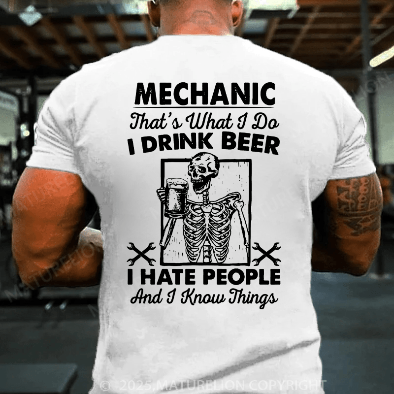 Maturelion Men's T-Shirt Mechanic That's What I Do I Drink Beer I Hate People And I Know Things Cotton T-Shirt