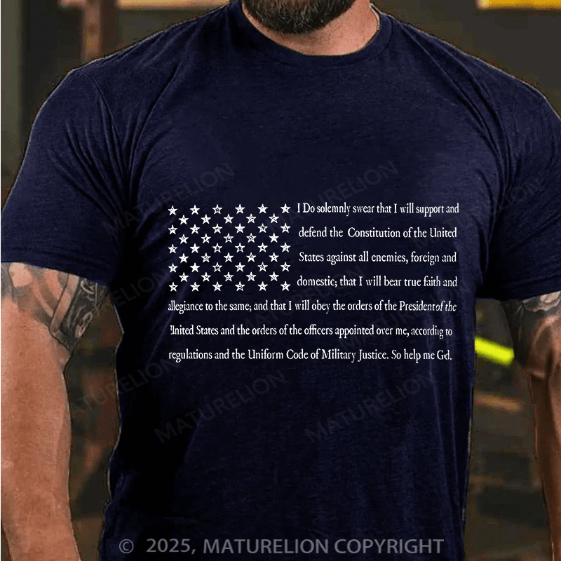 Maturelion Men's T-shirt Mlitary Oath of Enlistment U.S. Flag Cotton T-shirt