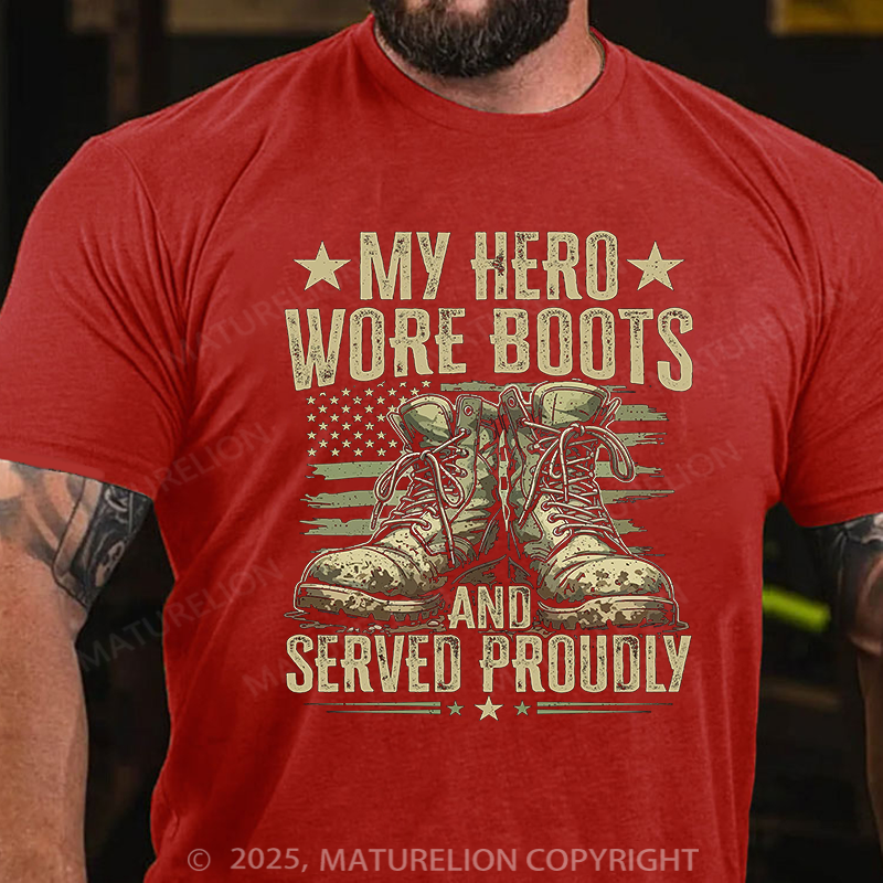 Maturelion Men's T-shirt My Hero Wore Boots And Served Proudly Cotton T-shirt