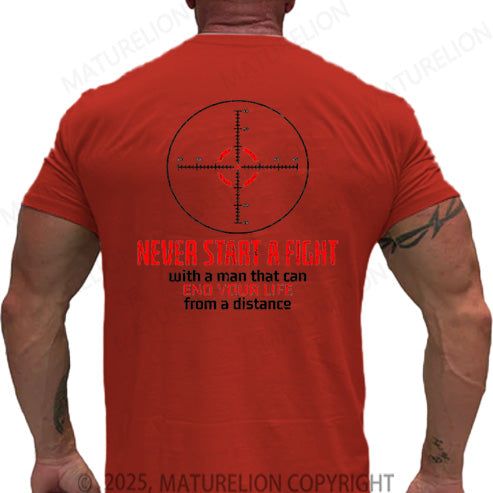 Maturelion Men's T-shirt Never Start A Fight With A Man That Can End Your Life From A Distance Cotton T-shirt