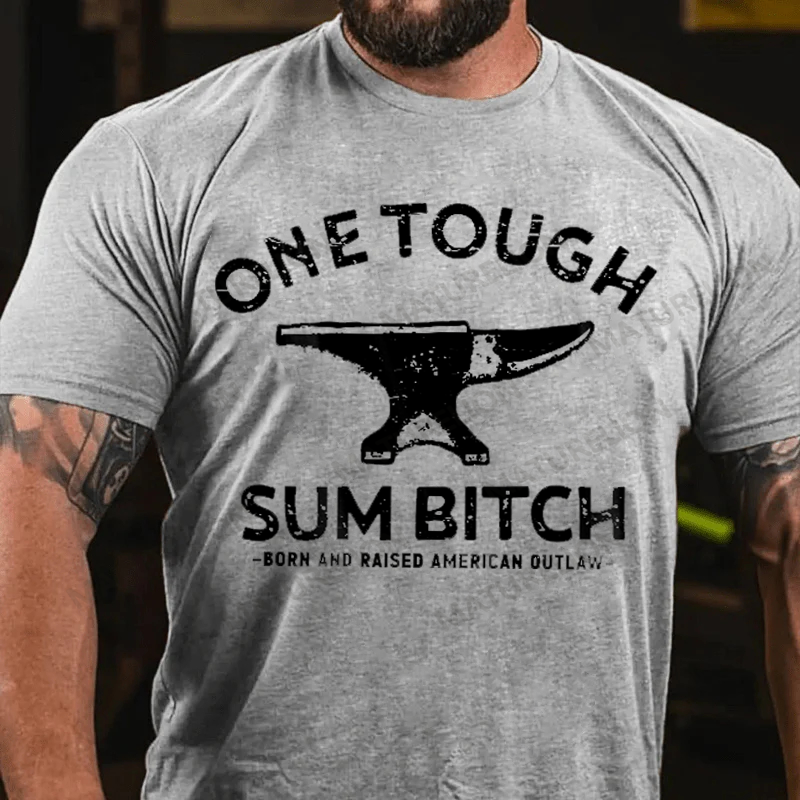 Maturelion Men's T-Shirt One Tough Sum Born and Raised American Outlaw Cotton T-Shirt
