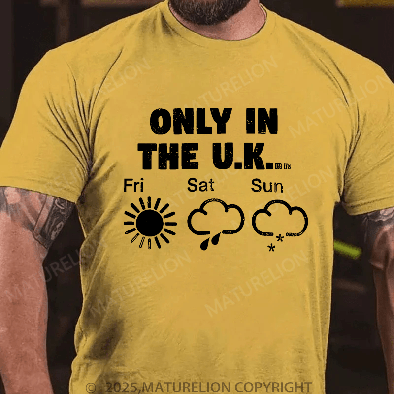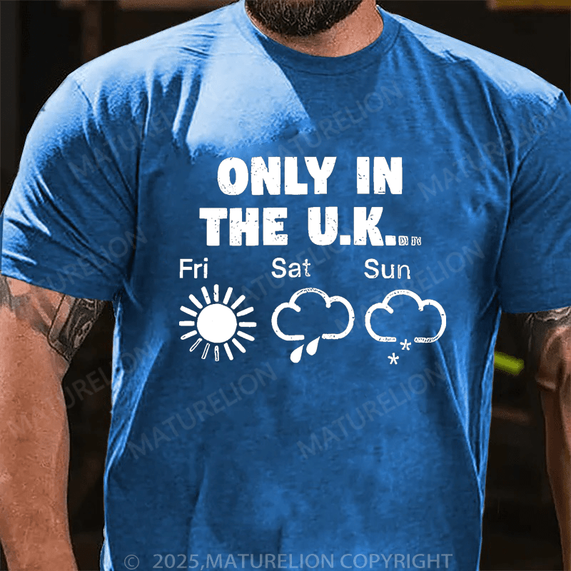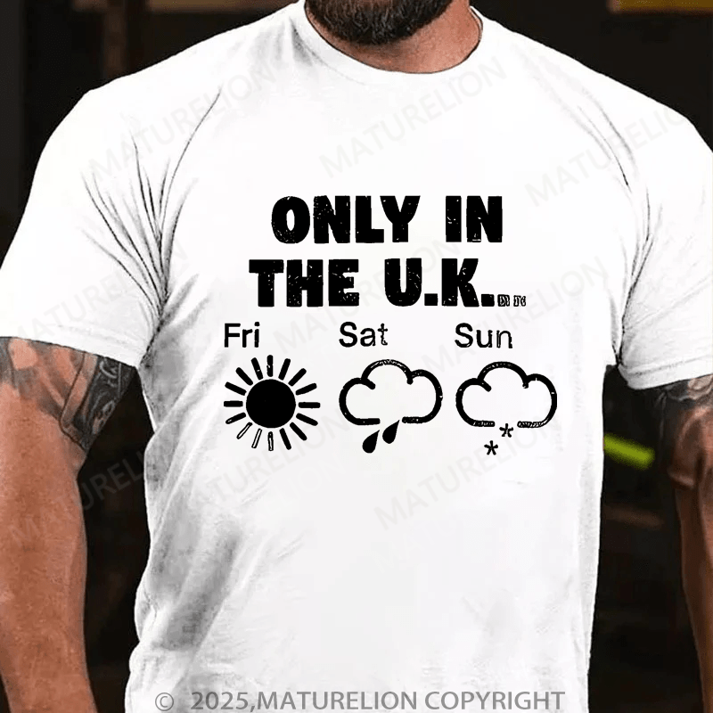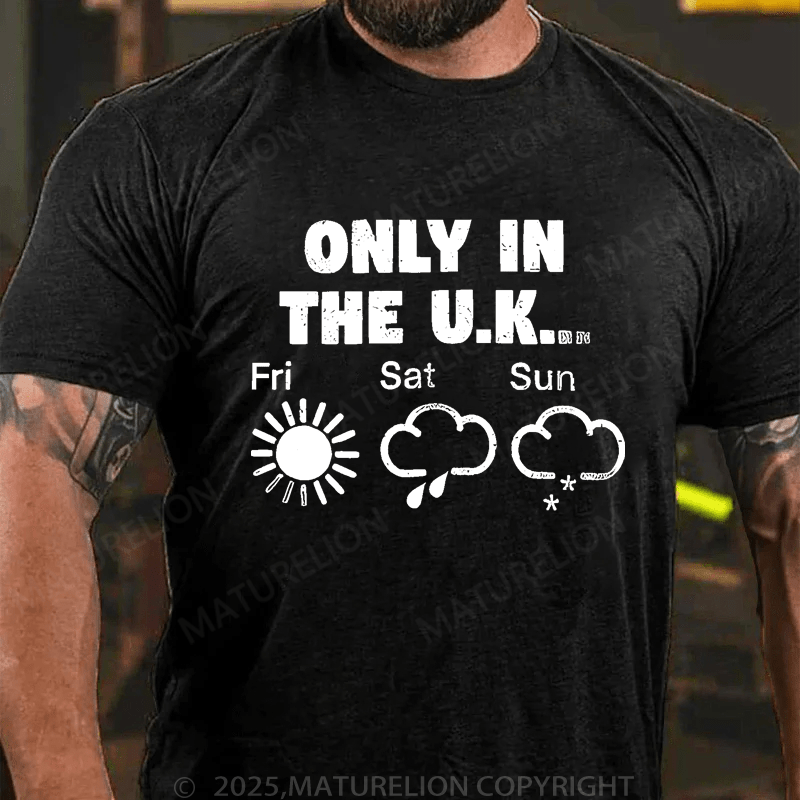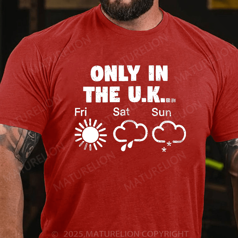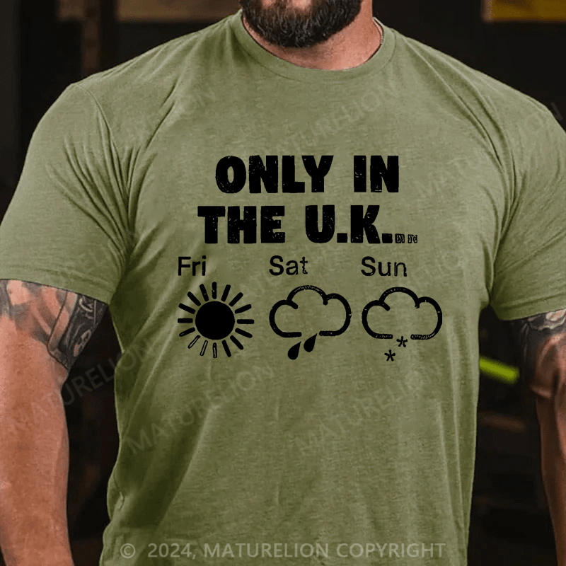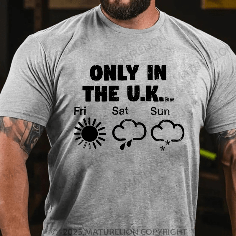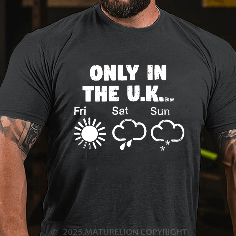 Maturelion Men's T-Shirt Only In The Uk British Weather Forecast Distressed T-Shirt (Free Customization)