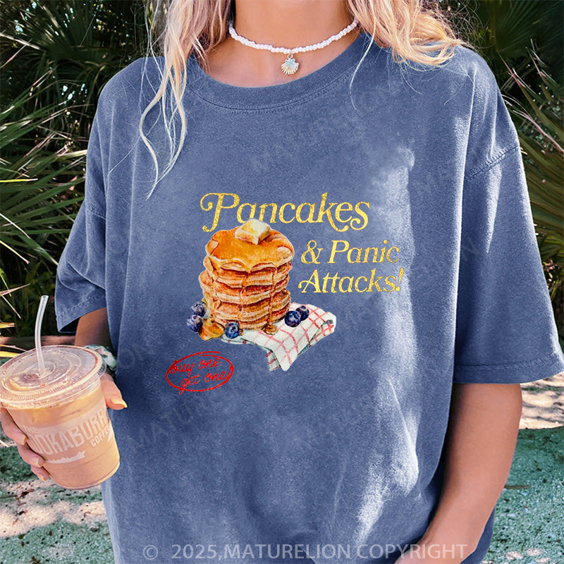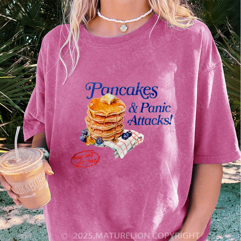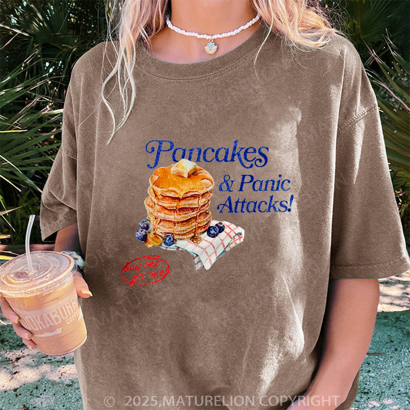 Maturelion Women's T-shirt Pancakes & Panic Attacks! DTG Washed T-shirt