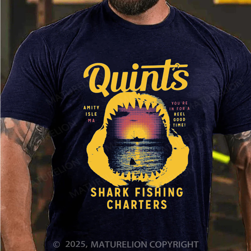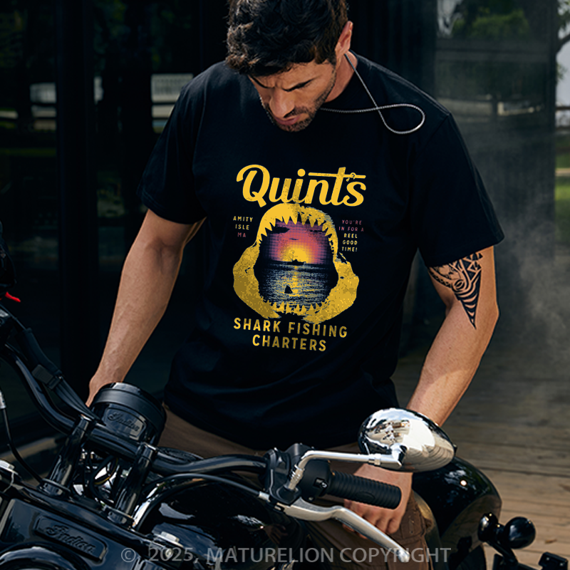 Maturelion Men's T-shirt Quint's Shark Fishing Charters Father's Day T-shirt