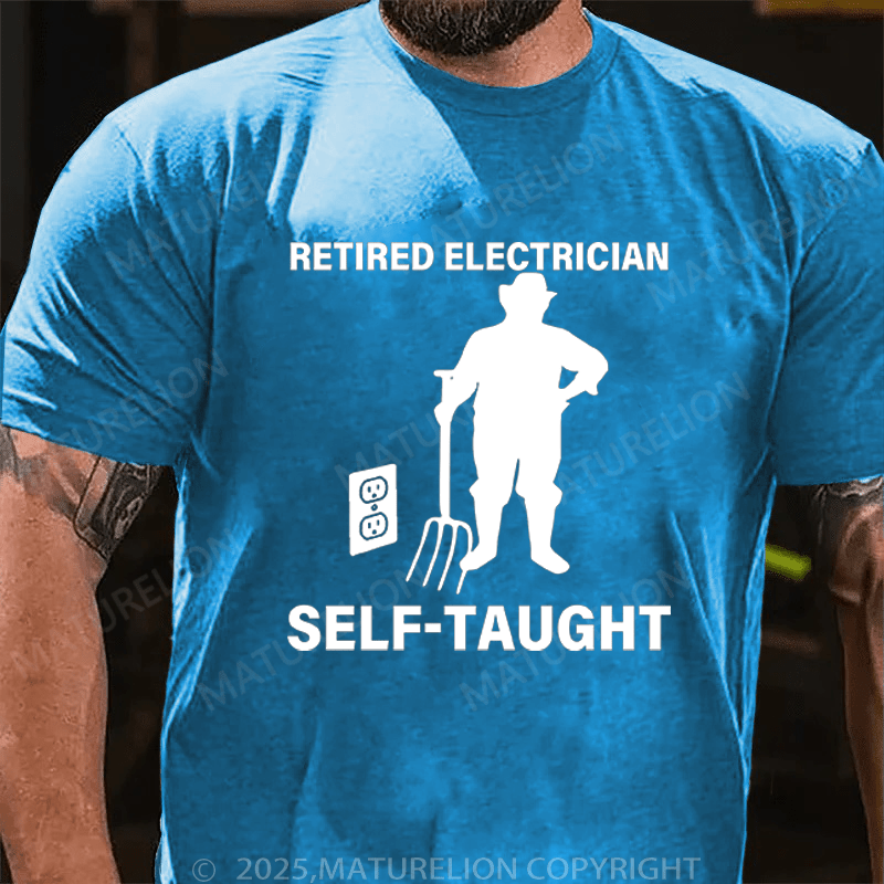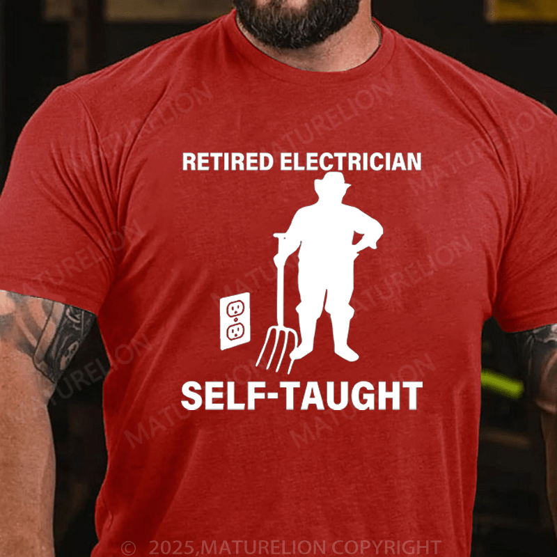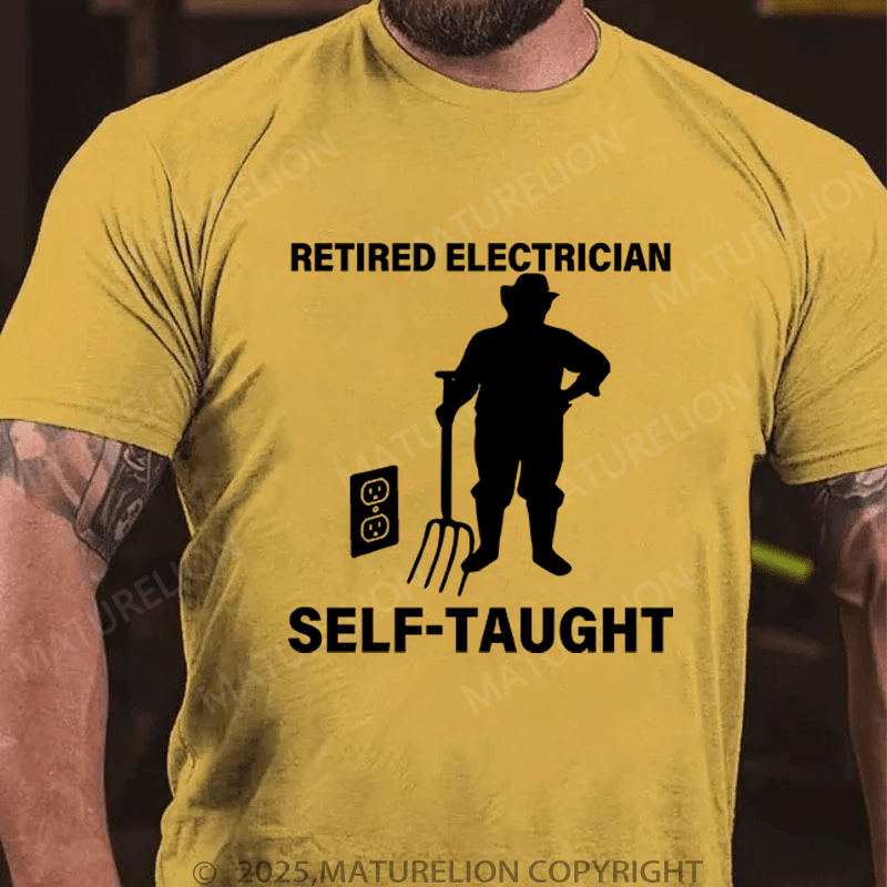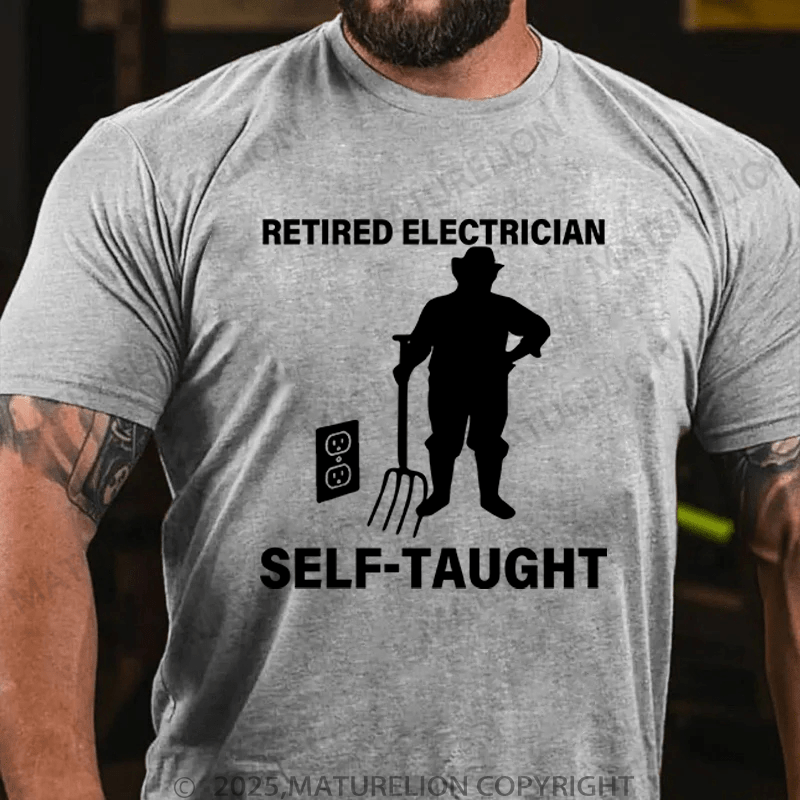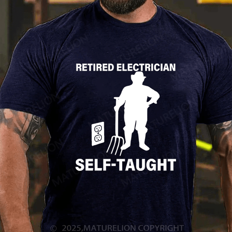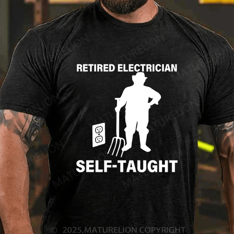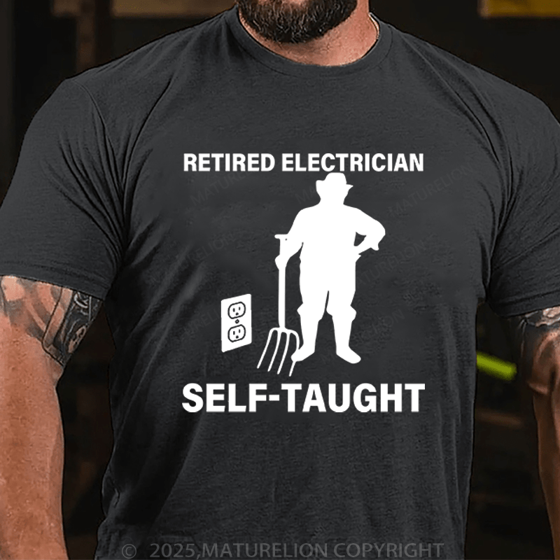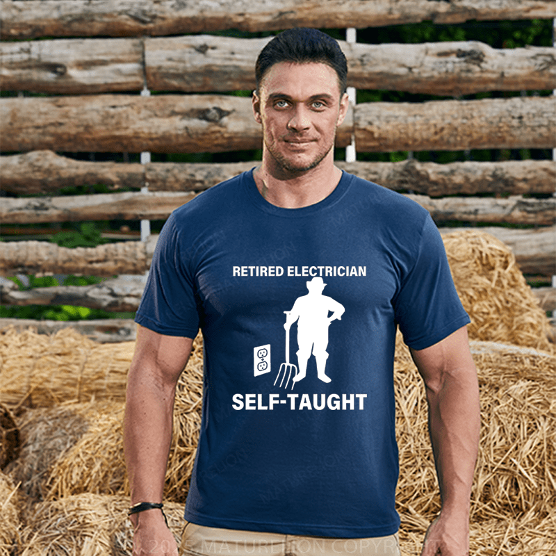 Maturelion Men's T-Shirt Retired Electrician Self-Taught Funny T-Shirt