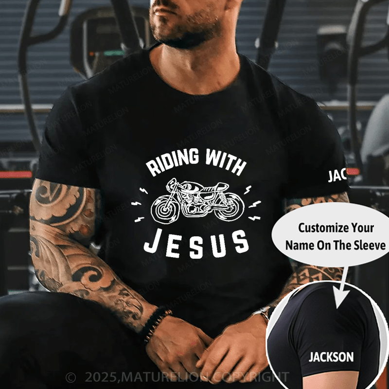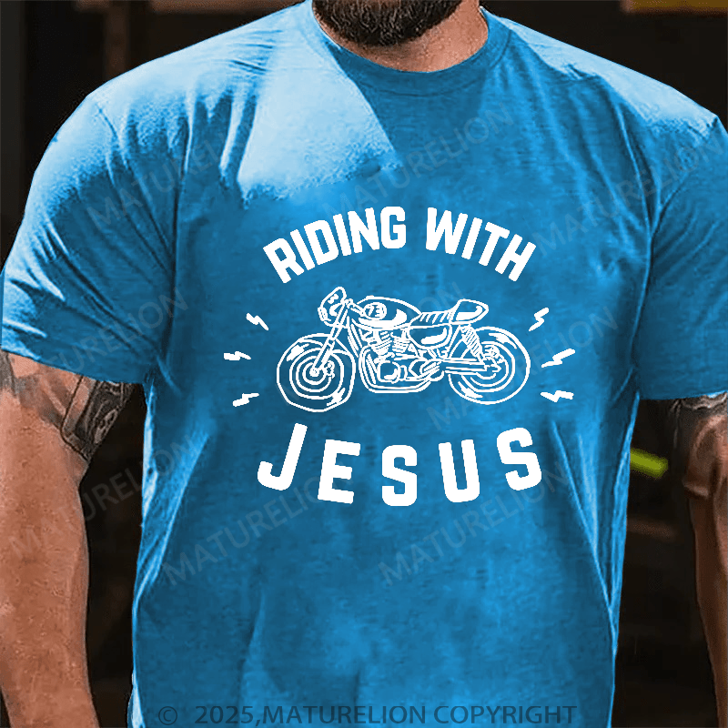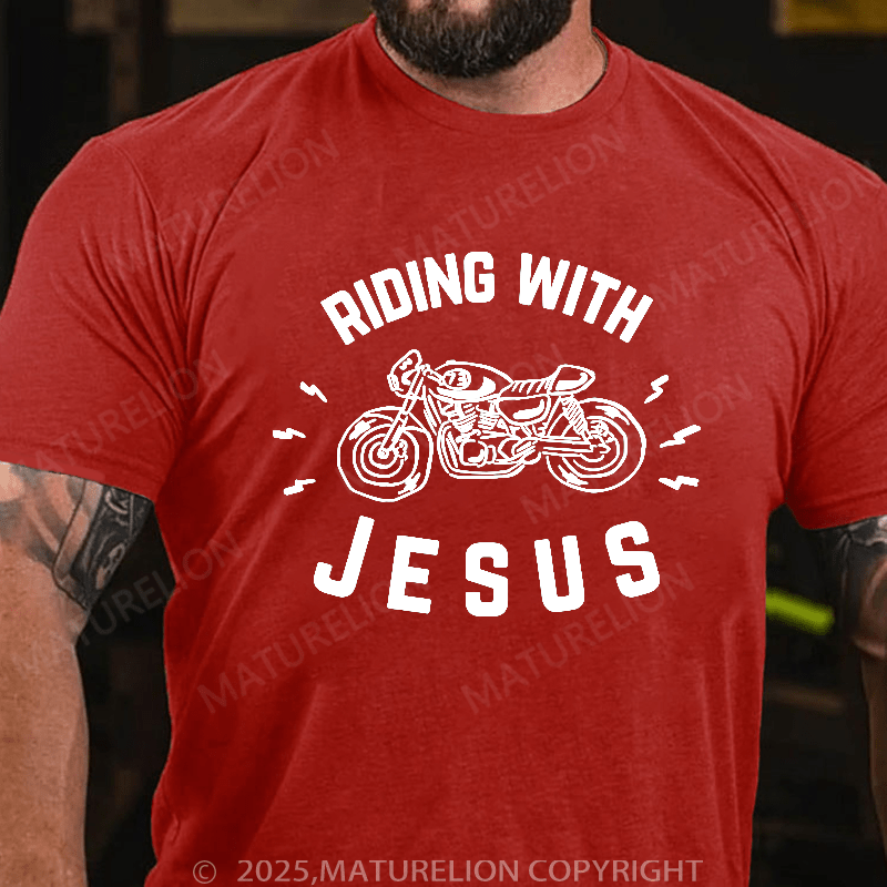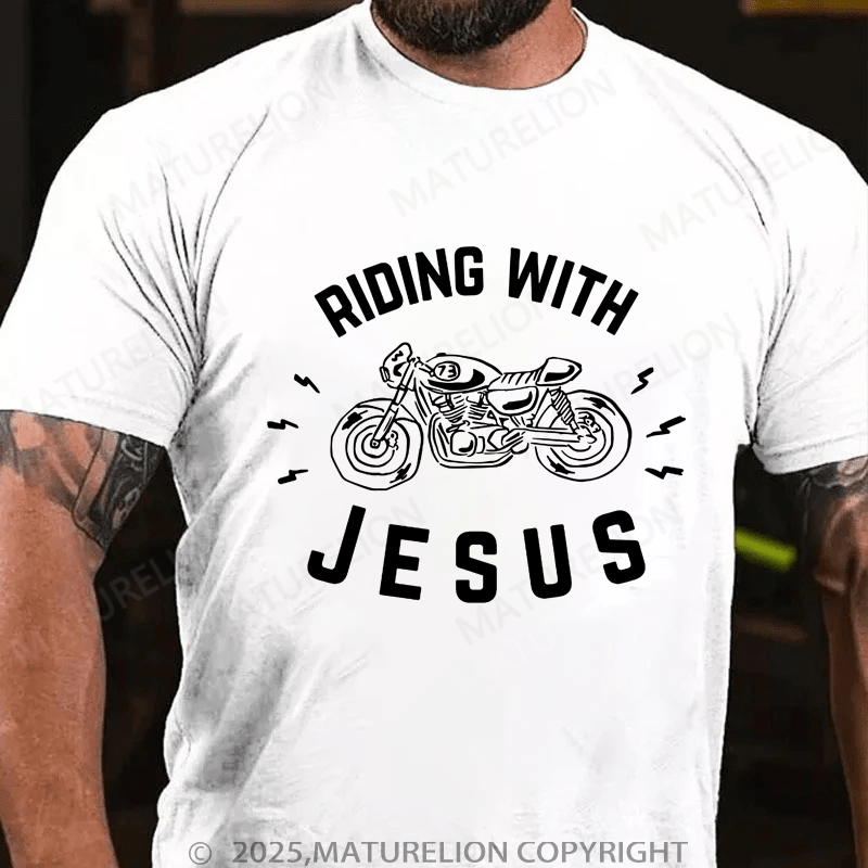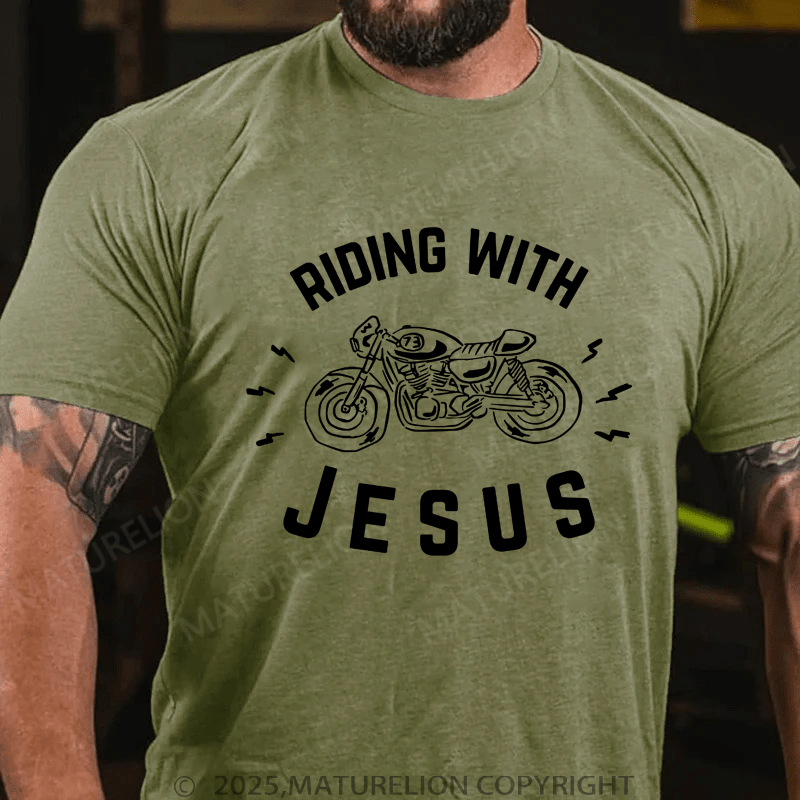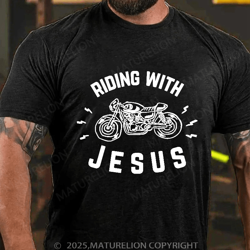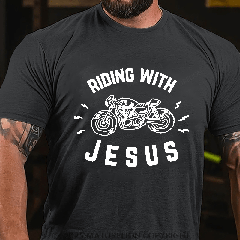 Maturelion Men's T-Shirt Riding With Jesus Funny T-shirt