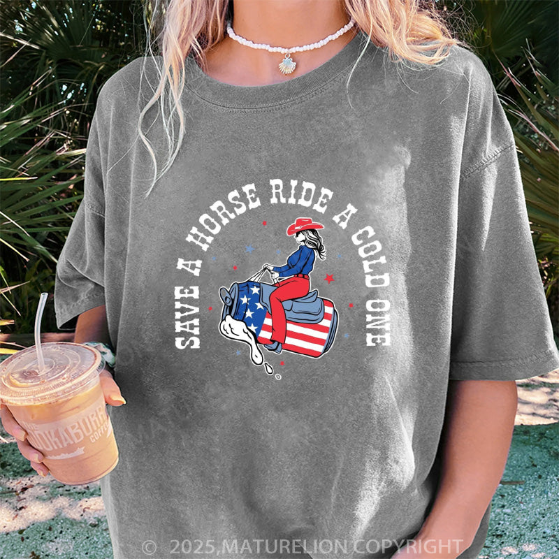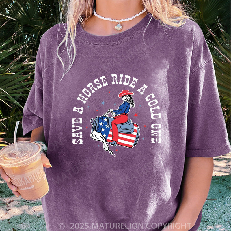 Maturelion Women's T-shirt Save a Horse Boyfriend DTG Washed T-shirt