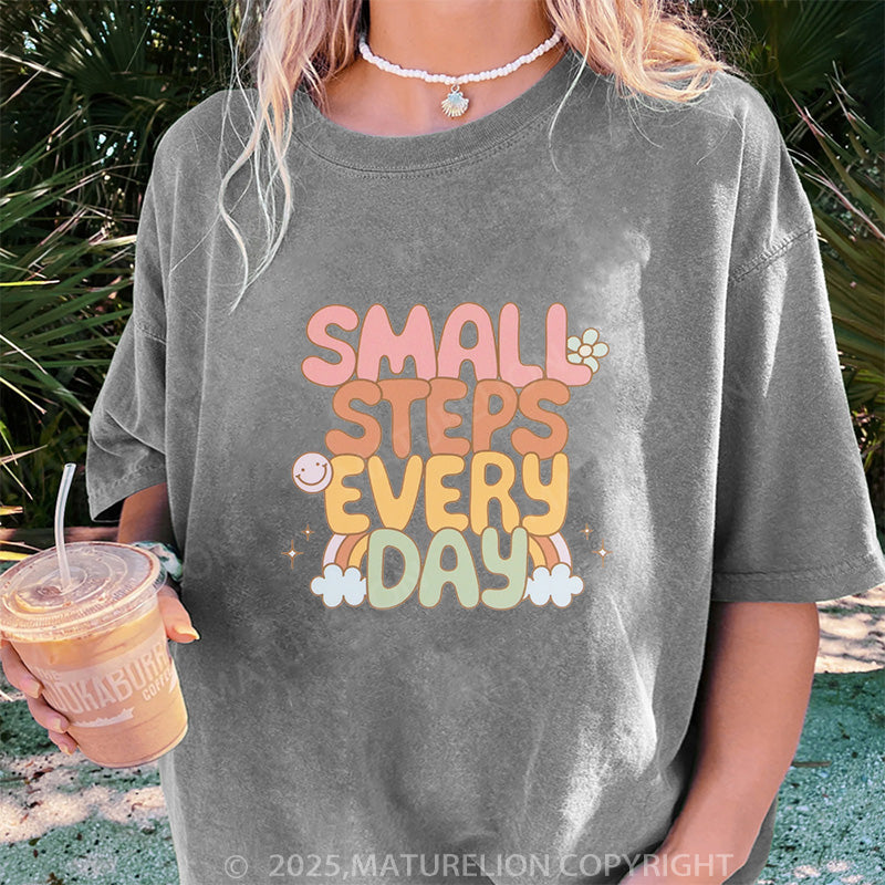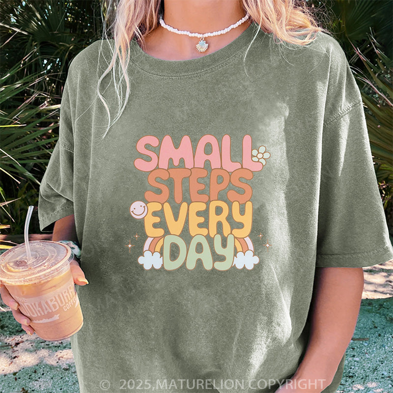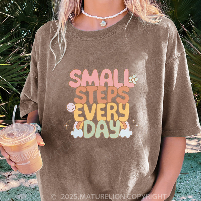 Maturelion Women's T-shirt Small Steps Every Day DTG Washed T-shirt