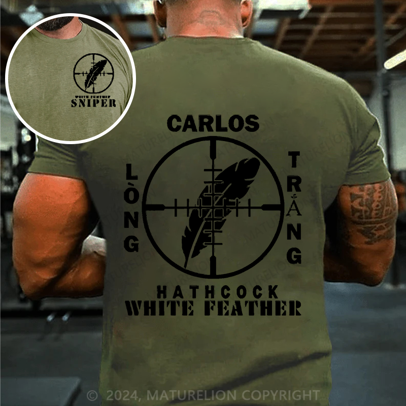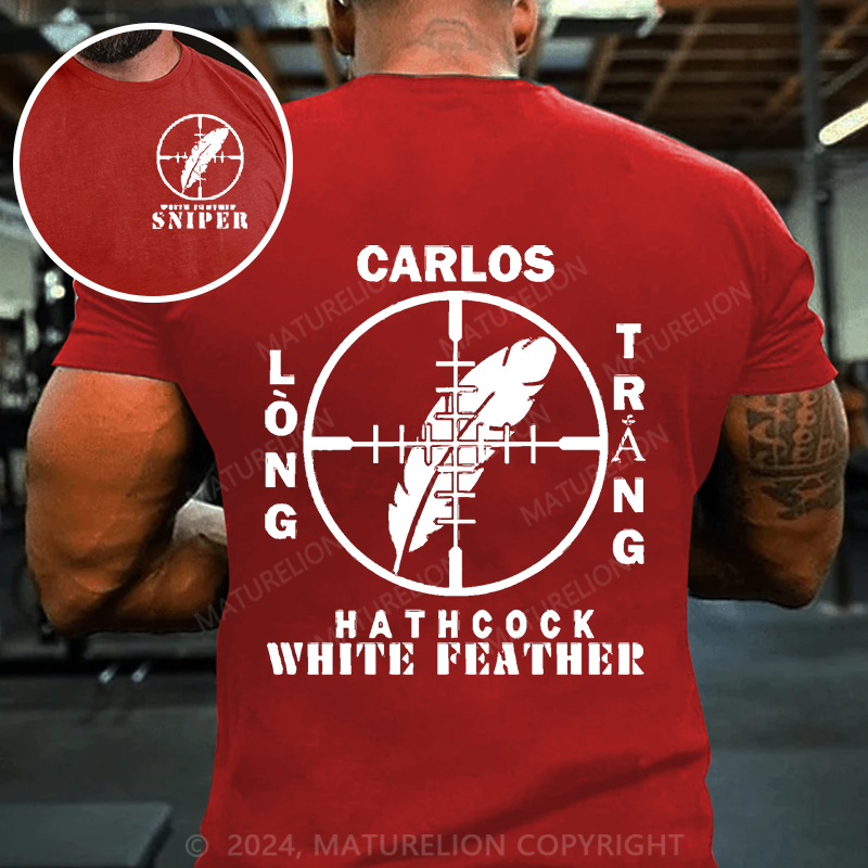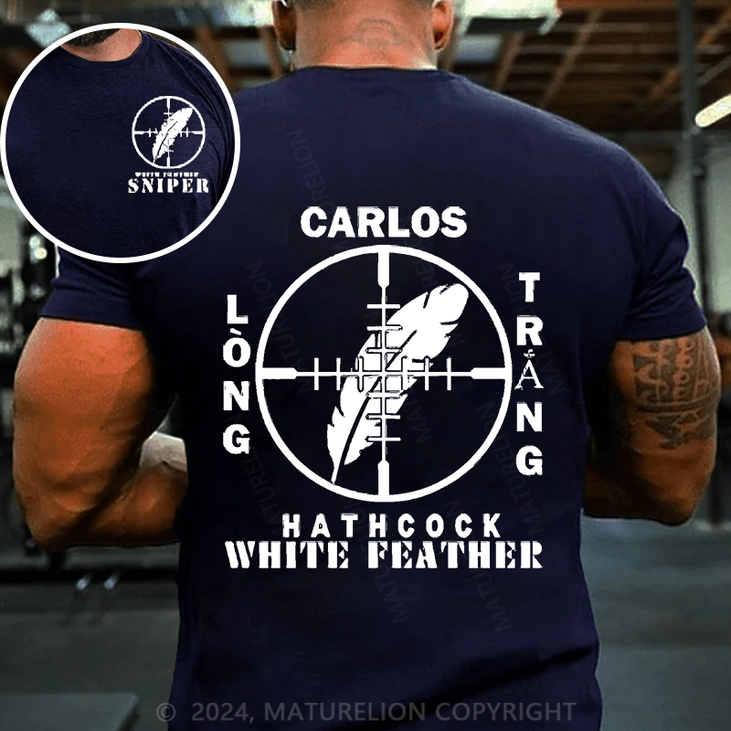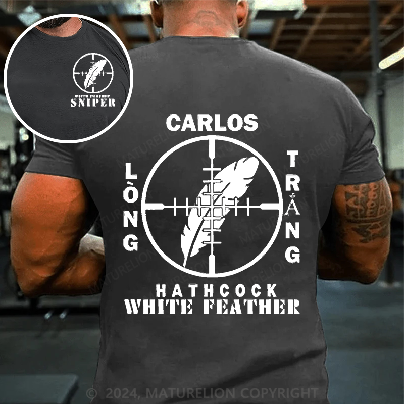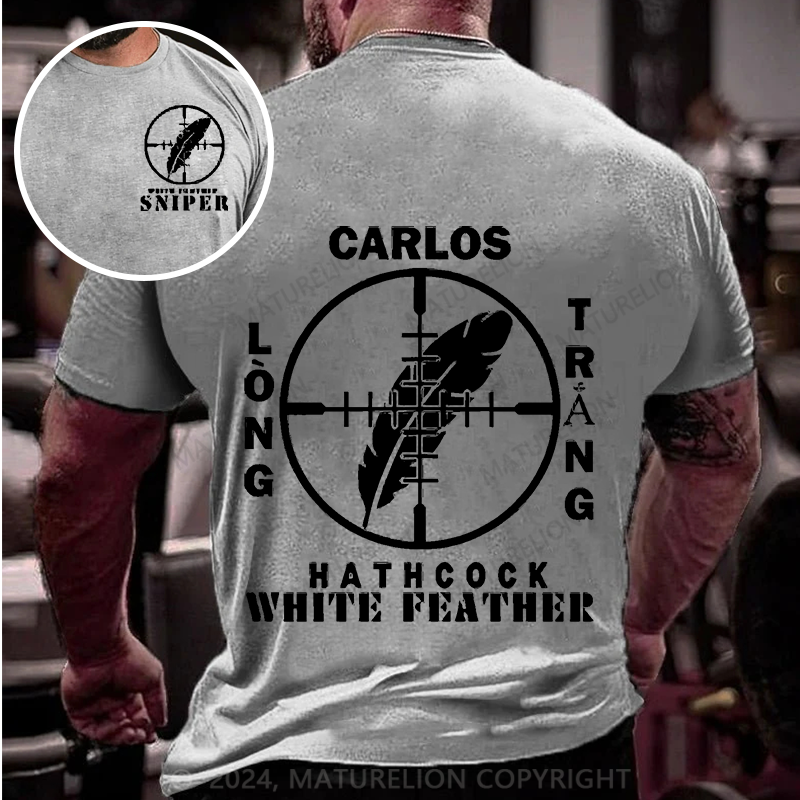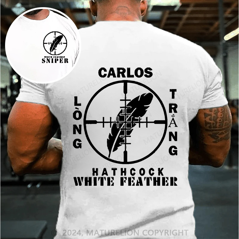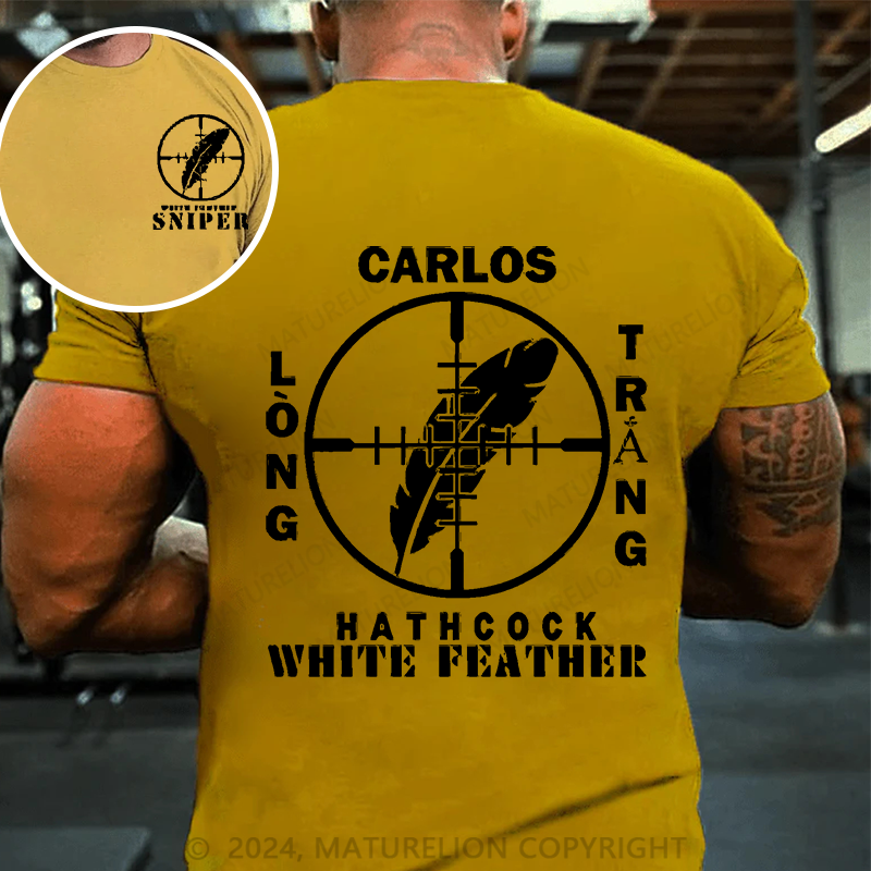 Maturelion Men's T-Shirt Sniper Carlos Hathcock White Feather Cotton T-Shirt
