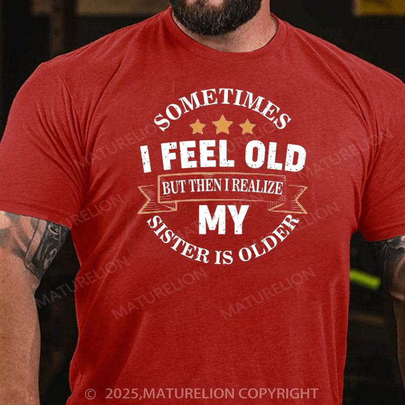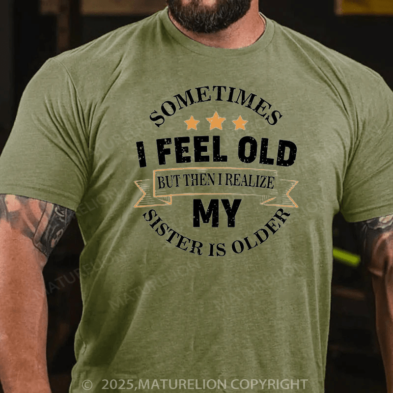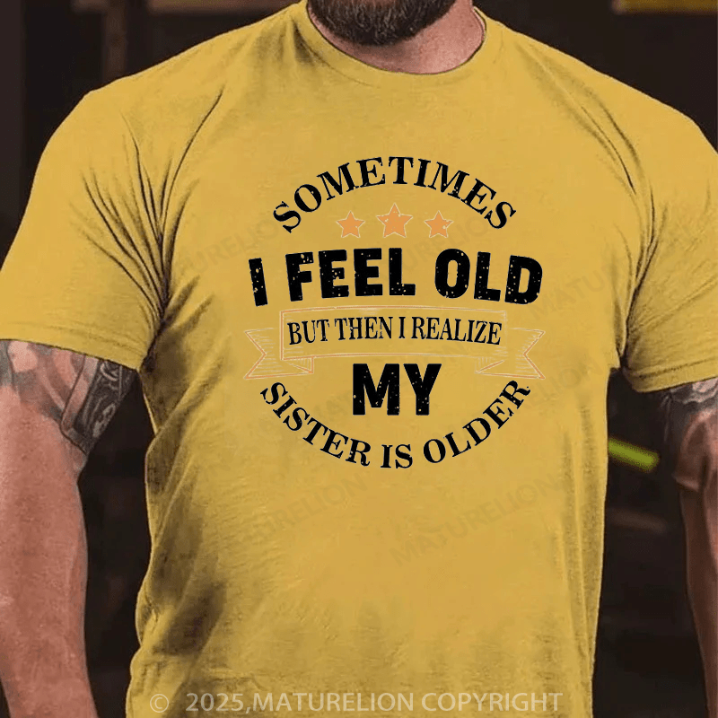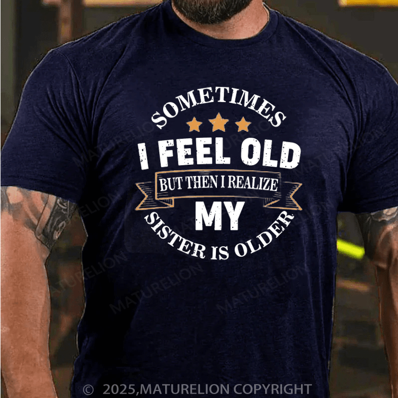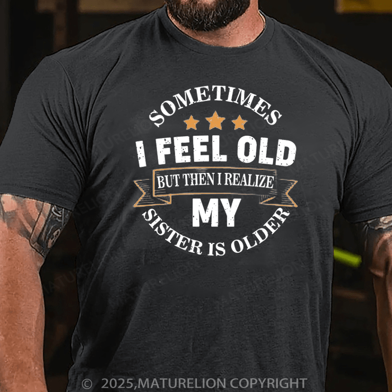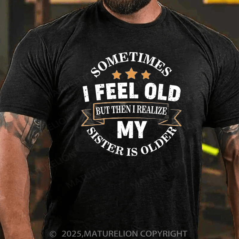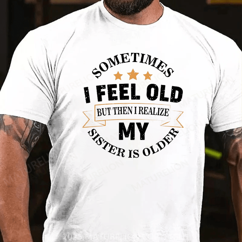 Maturelion Men's T-Shirt Sometimes I Feel Old But Then I Realize My Sister Is Older Cotton T-Shirt
