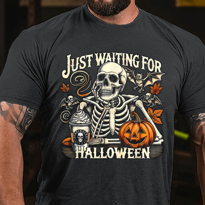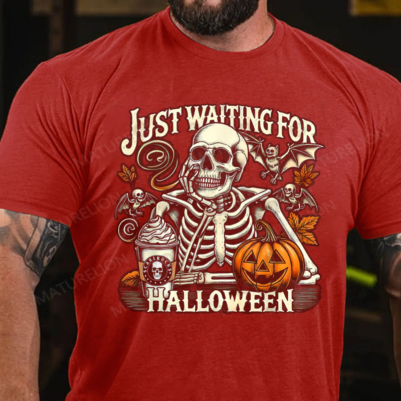 Maturelion Men's T-Shirt Spooky Vibes Loading... Just Waiting for Halloween Cotton T-Shirt
